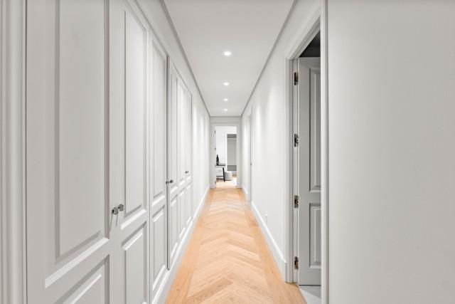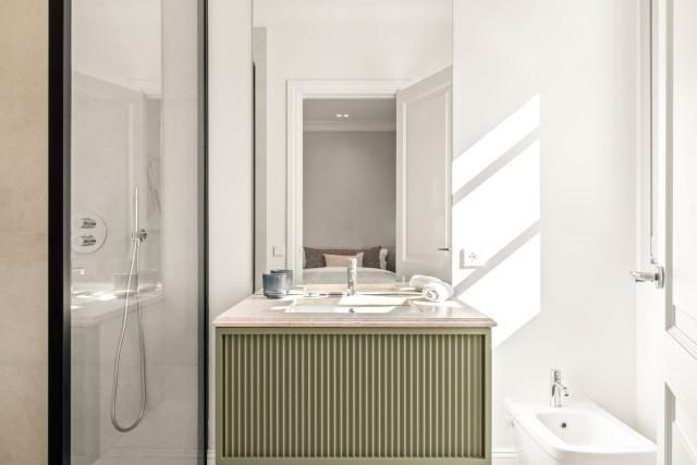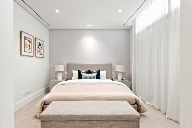 Spanning three levels, this villa comprises five bedrooms, each adorned in neutral tones and quality aesthetics. The master suite, occupying the first floor, is a masterpiece of opulent furnishings, intricate interior design and high-quality carpentry. The remaining bedrooms, strategically distributed across the ground floor and basement levels, offer breathtaking views of the meticulously landscaped garden.