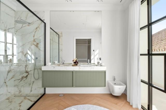 The basement of this villa is a spectacle of entertainment and luxury living. A spacious leisure room features a chic bar area, a home cinema with a state-of-the-art sound system, and a climate-controlled gym, ensuring the utmost enjoyment for its fortunate residents. Extremely well price NEW villa for sale in Nueva Andalucia... Don't miss this opportunity!