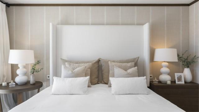 Ascending to the upper level, you will find three more bedrooms, each with its own en-suite bathroom. The master bedroom is a true retreat, boasting a spacious layout, his and her walk-in closets, and a private terrace offering stunning views of the golf course and the sea beyond.