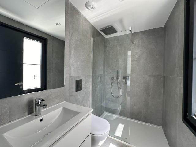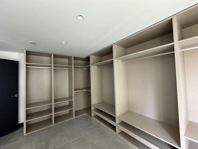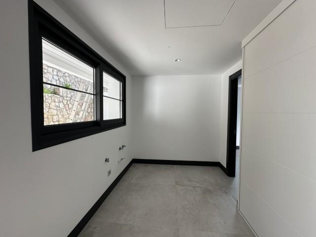 The grand entrance leads you into a large, open-concept living room that seamlessly connects with a modern kitchen, creating a warm and inviting atmosphere perfect for family gatherings. The kitchen is equipped with high-end appliances and includes a stylish wine room with a glass door, adding a touch of sophistication. Adjacent to the kitchen, you’ll find a cozy TV room and a third bedroom with an en-suite bathroom. There’s also a convenient service bedroom with a private bathroom located just beyond the kitchen.