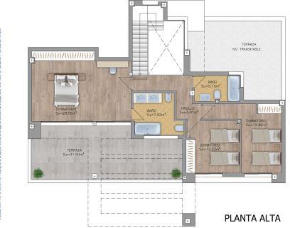 Ground Floor: The villa has direct and individual access. The entrance hall leads to a spacious and bright living room with large windows, creating continuity between the interior and exterior. A magnificent kitchen with access to the paved exterior porch, which becomes an outdoor dining area, and various layouts offering one to three bedrooms. A high-quality bathroom and a private garden of up to 225 m² with paved and landscaped areas.