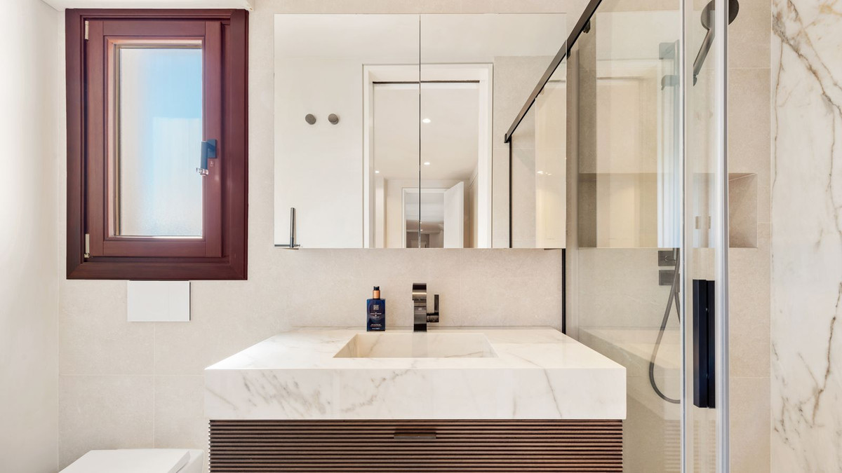 A spacious, fully refurbished 4-bedroom penthouse with a large entrance hall leading to the open plan living area. The modern designer fully fitted kitchen by SIEMATIC with the latest Miele appliances and breakfast island offers an inviting space for informal gatherings with family and friends. The combined open kitchen, dining room and living room are perfectly distributed all leading onto the grand terrace where different ambiences have been created, either enjoy the beautiful Mediterranean sunshine with an amazing back drop of the ‘La Concha’ mountain or relish in a more refreshing area under the automized pergola.