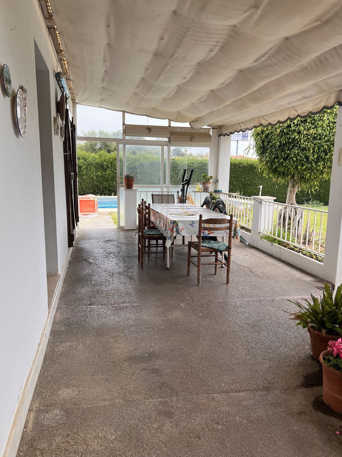 The plot is flat and on entering we find the garage, following the road we reach the porch of the main house, barbecue area and three more rooms that are currently used as bedrooms with a bathroom. The porch is covered and gives access to the entrance of the house. The main house is distributed in a living-dining room next to the kitchen with three large bedrooms and two bathrooms, one of them en suite. Next to the porch we find the barbecue area that leads to the area where the three bedrooms with a bathroom are located. On the right side of the main house is the swimming pool with a shower and toilet area. There is also a large storage room in this area.