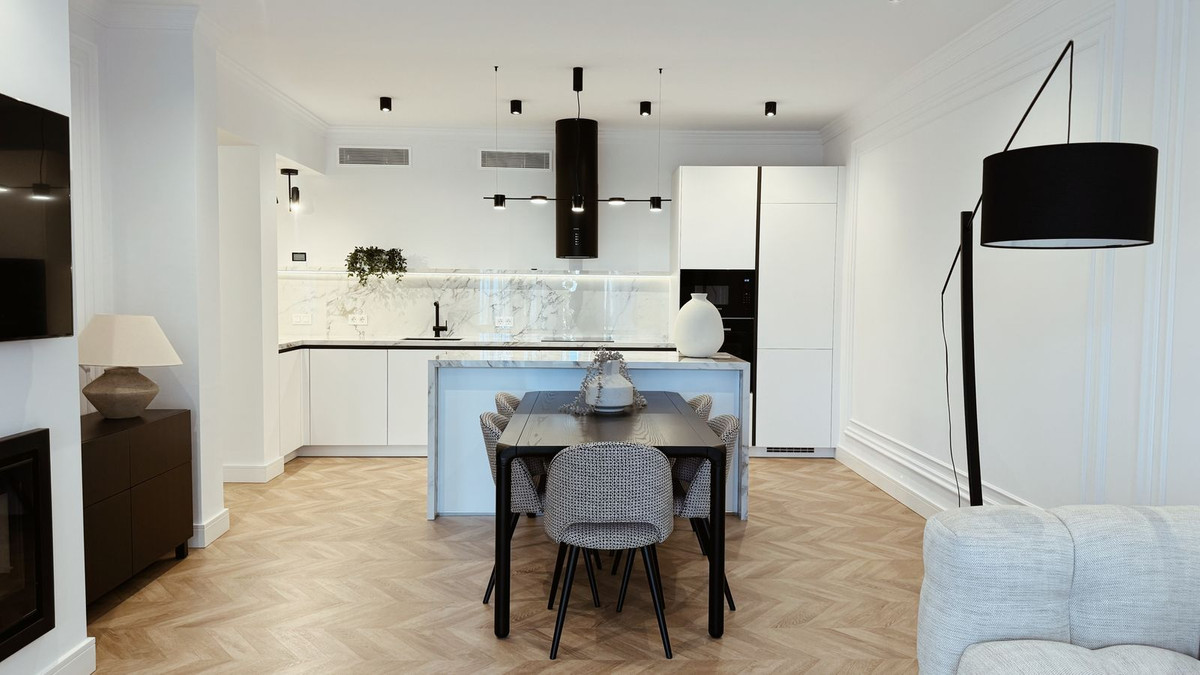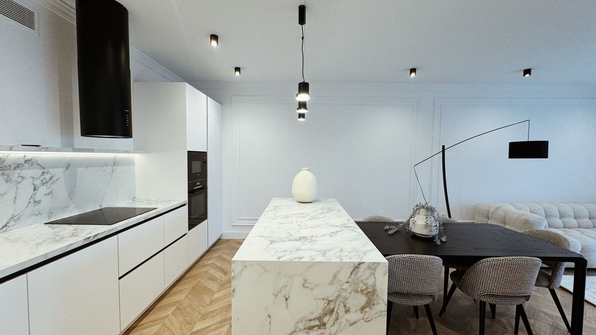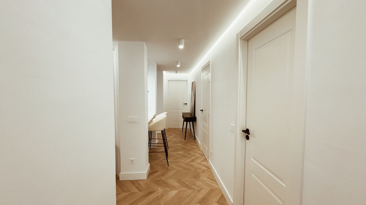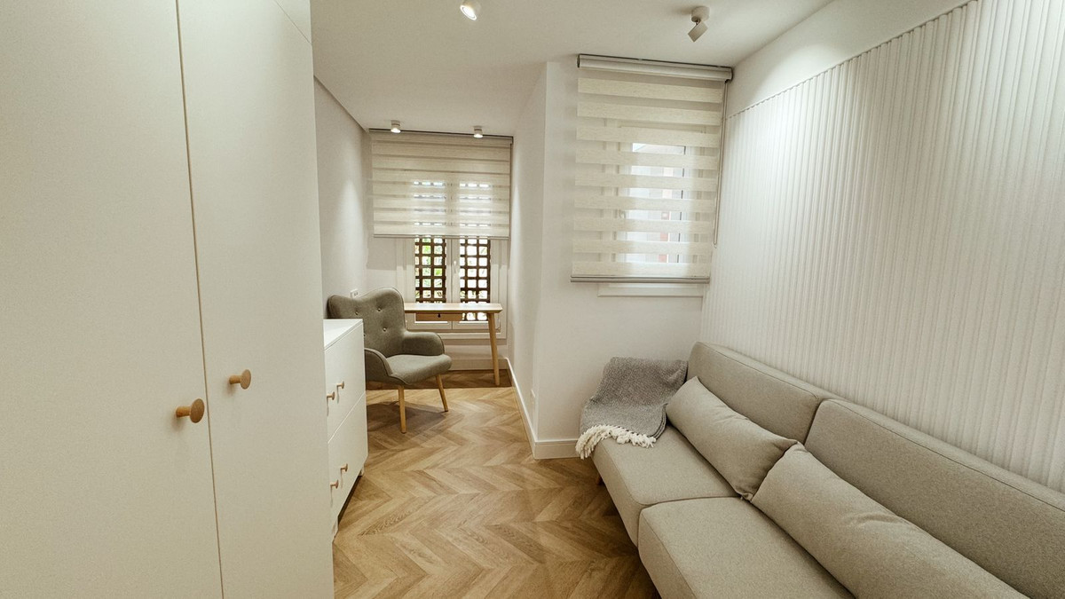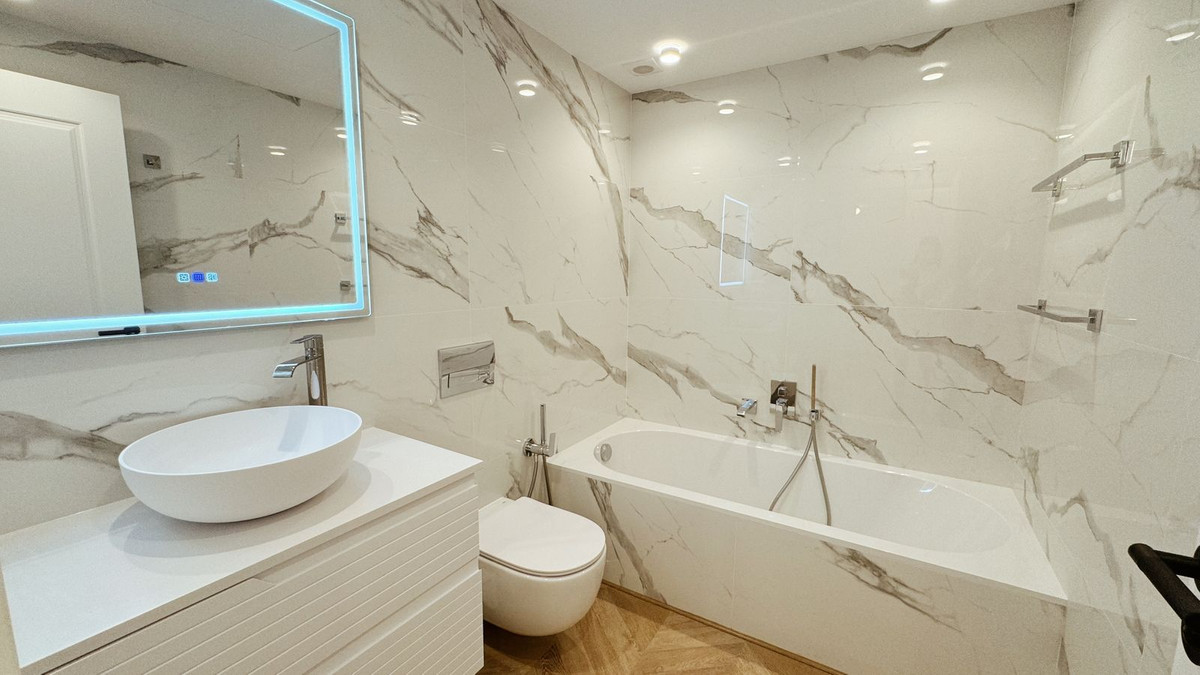 The apartment has been recently renovated and is decorated in a modern style using high-quality materials and stylish design solutions.