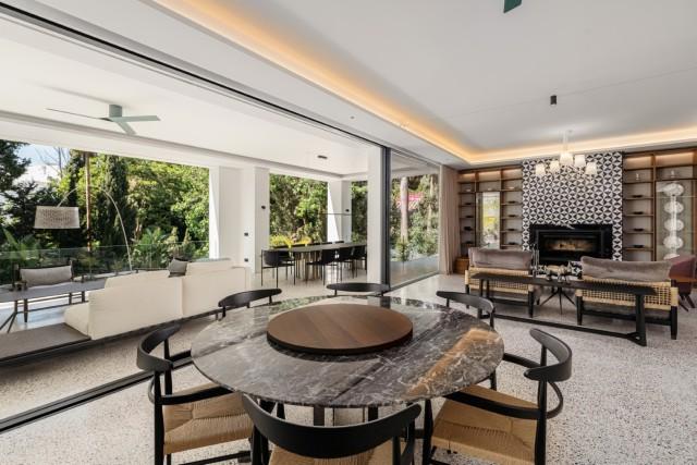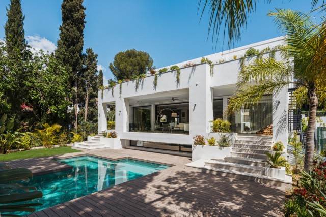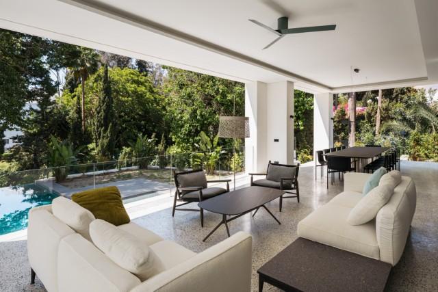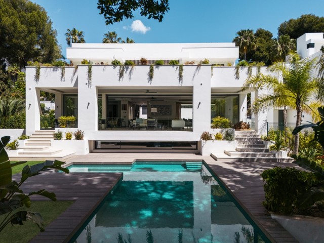 The modern design of the villa, with an open plan layout and floor-to-ceiling windows, seamlessly brings the beautiful flora inside, offering a home where nature is an integral part of everyday life. Located in one of the most exclusive areas of Marbella, in the heart of the Golden Mile with access to the motorway, close to Marbella centre, the beach and Puerto Banus.
