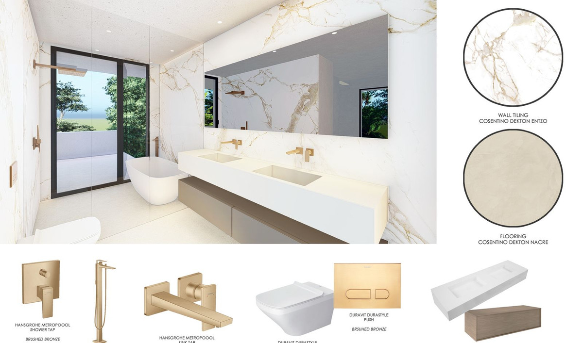 From this lovely feature the bedrooms of the first floor are accessed. The master bedroom designed with high ceilings of 19sqm with a separate dressing room area of 15m2, and luxury ensuite bathroom of 12.5m2. This master suite accesses the west-facing uncovered terrace of 16m2.