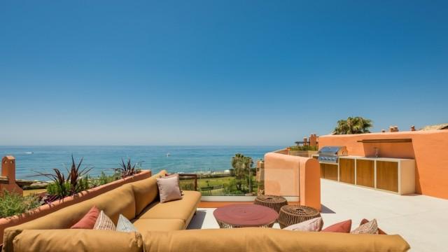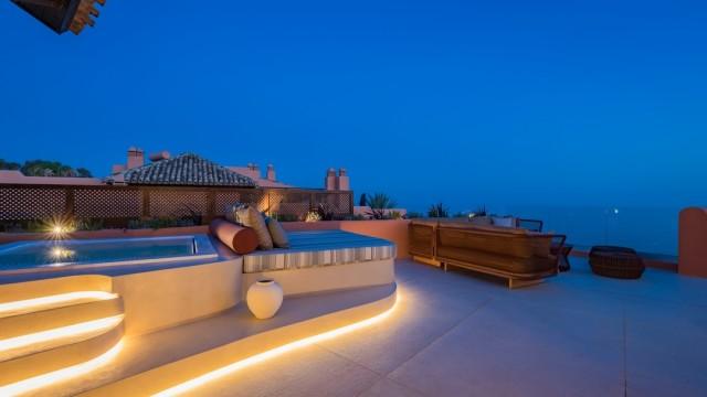 This outstanding property impresses with an exclusive interior design, elegant contemporary furniture, tailormade wardrobes, a new Siematic designer kitchen with Miele appliances, a Bang & Olufsen sound system, an electric fireplace and stylish Kettal outdoor furniture. You can enjoy the true beauty of a frontline beach location from both terraces, with sea views that follow the shoreline and the Mediterranean to the outlines of Gibraltar and North Africa. The penthouse comes with 2 underground parking spaces and a storage room.