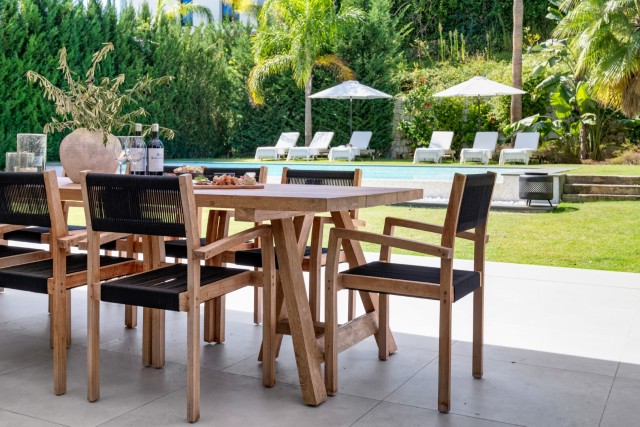 One of the most appealing aspects of this villa is its prime location. Just a short stroll from the villa, residents can find a variety of restaurants, bars, shops, and the beautiful beaches of Puerto Banus. Despite its proximity to these amenities, the villa offers total privacy, making it a perfect retreat from the hustle and bustle of everyday life. For those who value security, the property is equipped with high-security measures, including surveillance cameras and an armored door. Additionally, there is ample parking space for up to five cars.