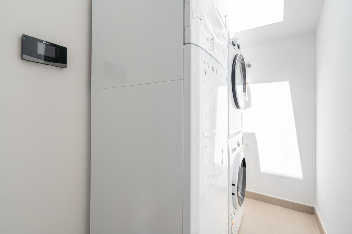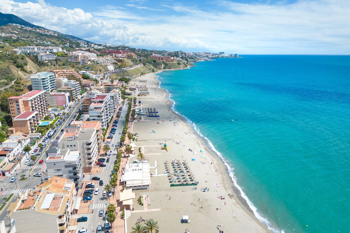 The residence belongs to an exclusive gated community with landscaped communal areas, a shared pool, and fitness facilities. Its location is ideal — just a 5-minute walk to the beach, with the Carvajal train station on the doorstep offering direct connections to Málaga Airport and Fuengirola town centre.