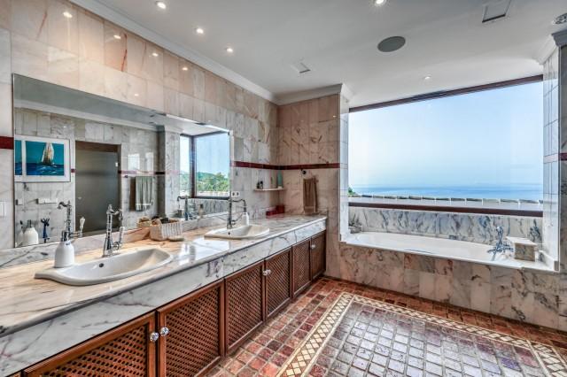 Stunning luxury villa with panoramic sea views for sale in Marbella East. This astonishing luxury villa is nestled in a secluded oasis of tranquility, offering unparalleled privacy amidst unspoiled natural beauty. Set upon an elevated 5-hectare estate, this property boasts breathtaking panoramic views of the surrounding countryside, coastline and the sea.
