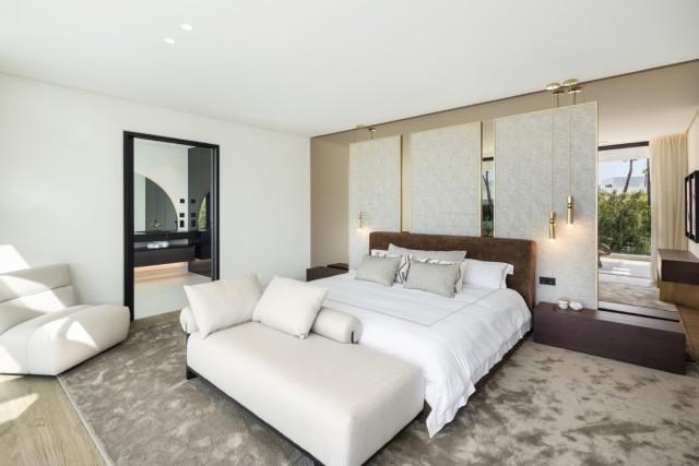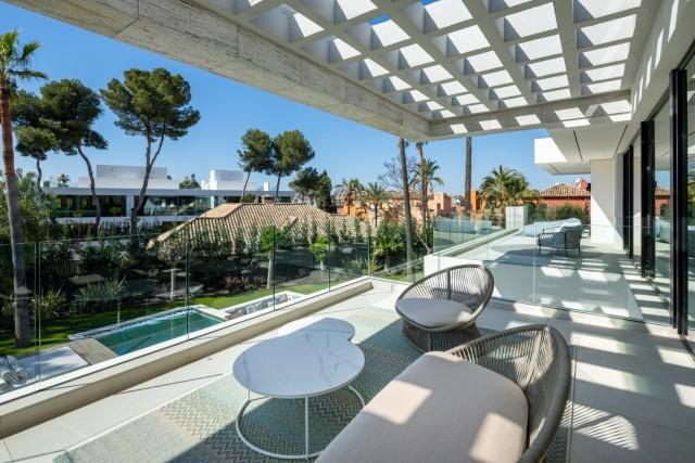 Fascinating modern villa for sale located in a prime location in Nueva Andalucia Marbella. Designed by the renowned architect Carlos Lamas, this villa boasts incredible architecture that captivates with its contemporary elegance. The facade is a masterpiece, commanding attention with its striking design, while the property entrance features a stunning water feature that adds to its allure.