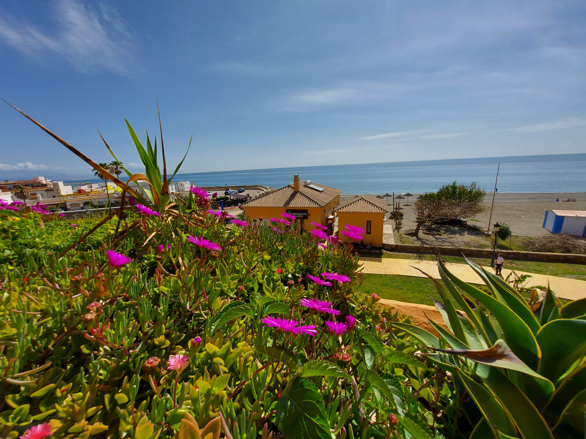 Urb. Los Granados - Sought after front line Beach development. A well presented modernised (new top of the range kitchen) front line beach 2 bedroom corner apartment with uninterrupted beach and sea views from the terrace. The complex is located on the beachfront with a large lagoon style swimming pool set in spacious grounds. The complex also has underground parking, 24hr security and is a short walk along the beach to the fishing village of Castillo and Duquesa marina.