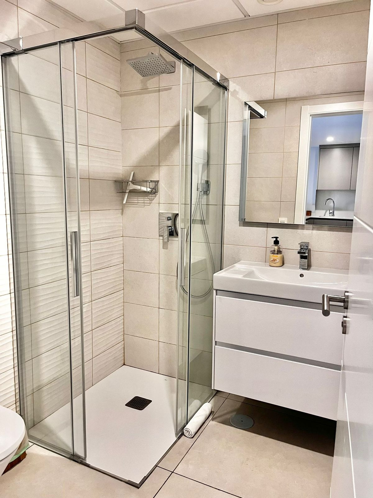 There is a separate bathroom with a shower for guests.