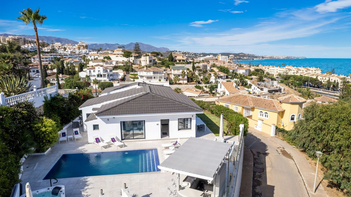 Amazing sea views from the beautifully presented 5 bedroom 6 bathroom villa finished to a very high standard, the light in this beautiful villa flows through from every side, large floor to ceiling windows in every room allows the sunlight to flood in, with easy access to the garden and pool from most rooms this really is the perfect holiday/home for anybody looking to be close to the beach, shops/restaurants, the town of La Cala de Mijas or Riviera del sol.