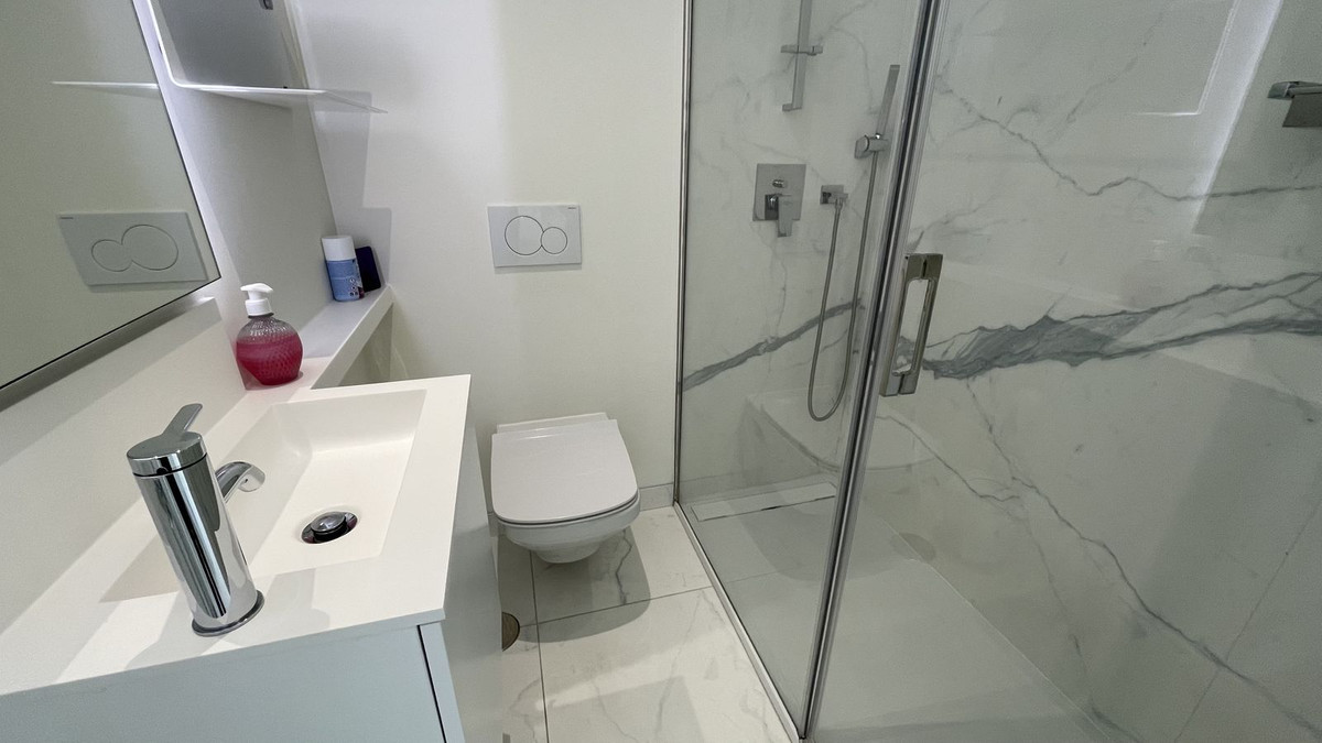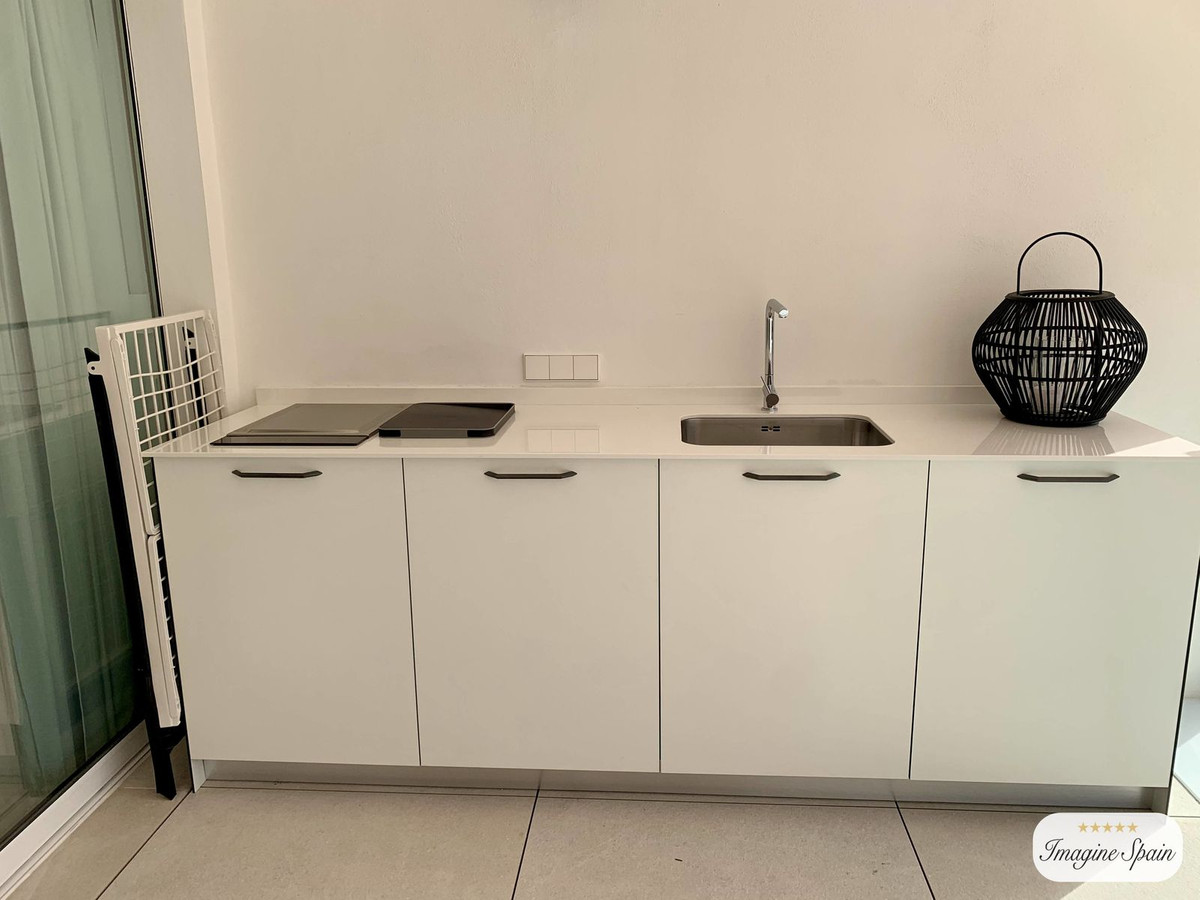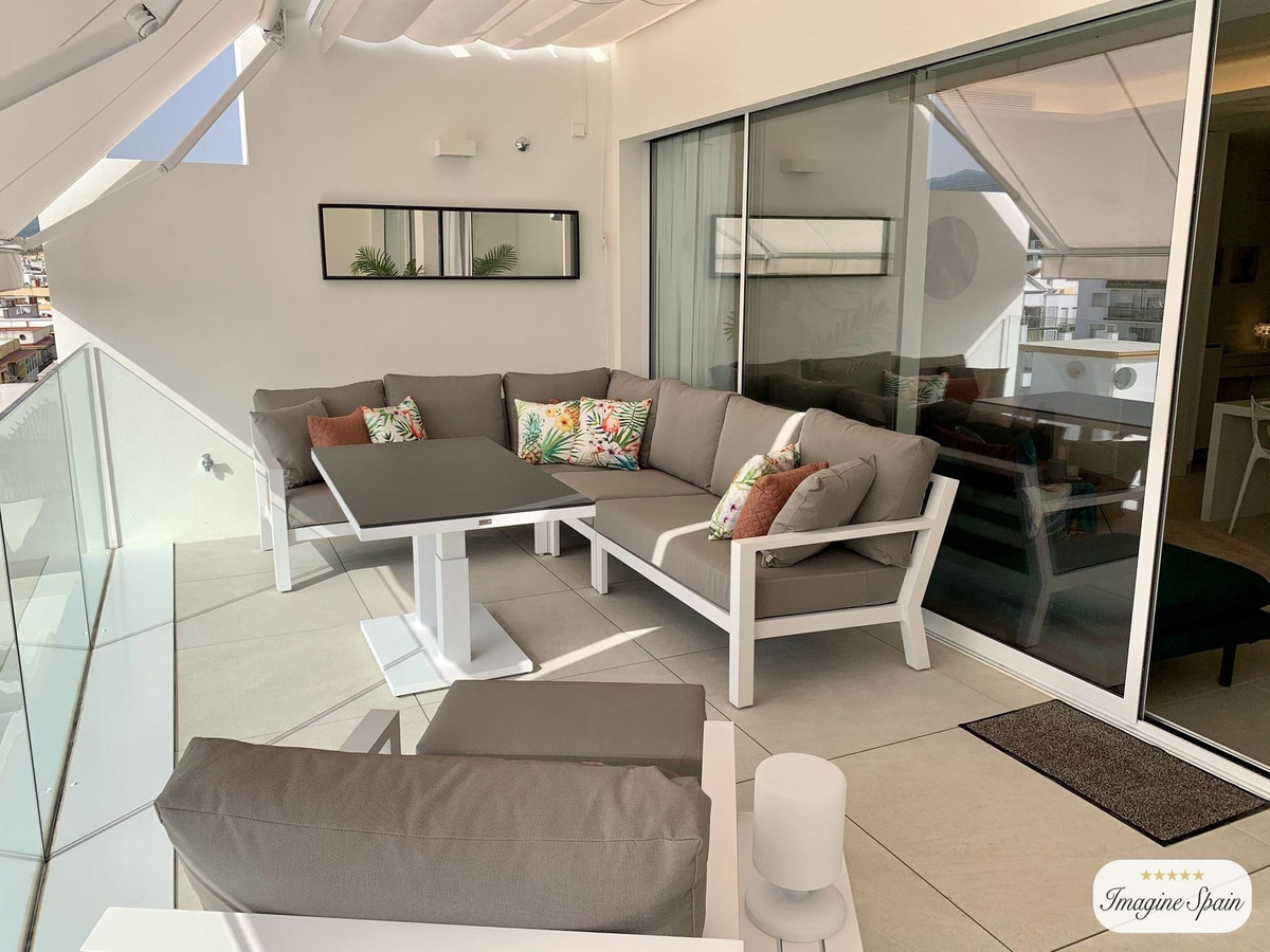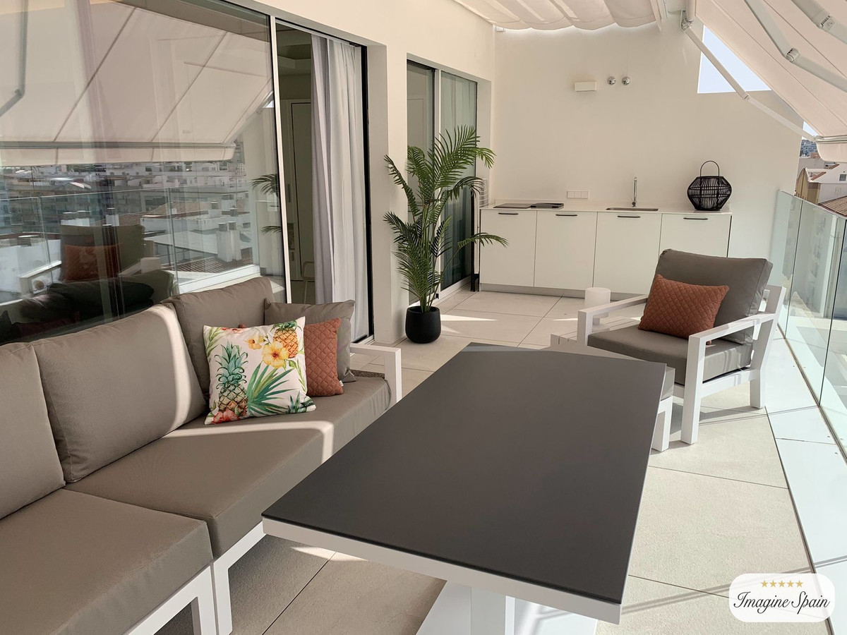 Beautiful top floor apartment on the beachfront, entrance from the new Estepona promenade. Very central, next to all kinds of services and amenities. Panoramic views to the town of Estepona and Sierra Bermeja. It is located in a luxury, inteligent and efficient building, recently build. The apartment has been modified to have two bedrooms instead of one. The modern kitchen is equipped with AEG appliances and includes a hob, oven, microwave, refrigerator, washingmachine and dryer. Large terrace with grill and dishwasher. Aerothermal air conditioning and underfloor heating. The apartment includes a garage space and storage room. The building has a pool on the roof, toilets, Jacuzzi, gym and BBQ. Price including furniture: 625.000€