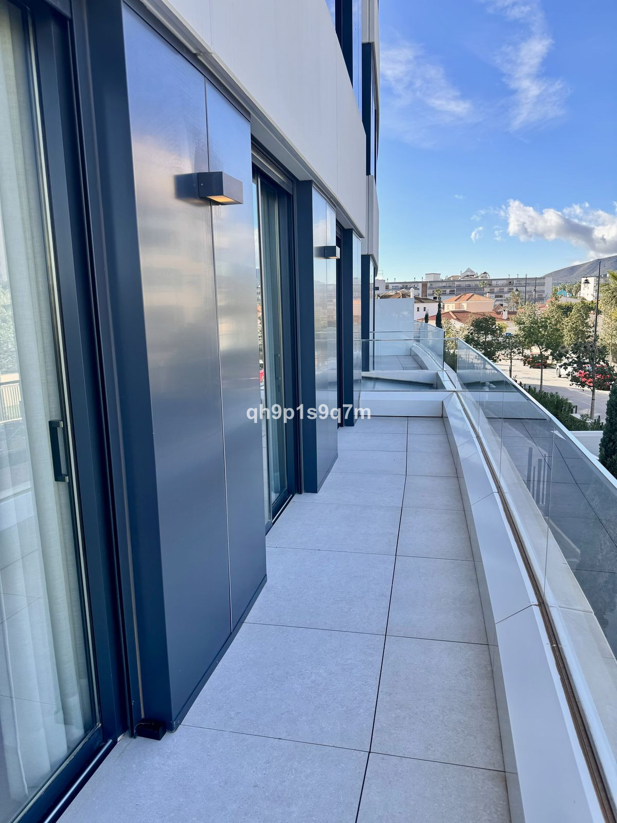 The apartment features three spacious bedrooms, including a master suite with an en suite bathroom and a walk-in wardrobe for added comfort and practicality. Two of the bedrooms open onto a private terrace, providing additional outdoor space to relax and enjoy the fresh sea air. The remaining bedroom is thoughtfully designed to accommodate guests or family members, with easy access to a second full bathroom and an additional guest toilet.