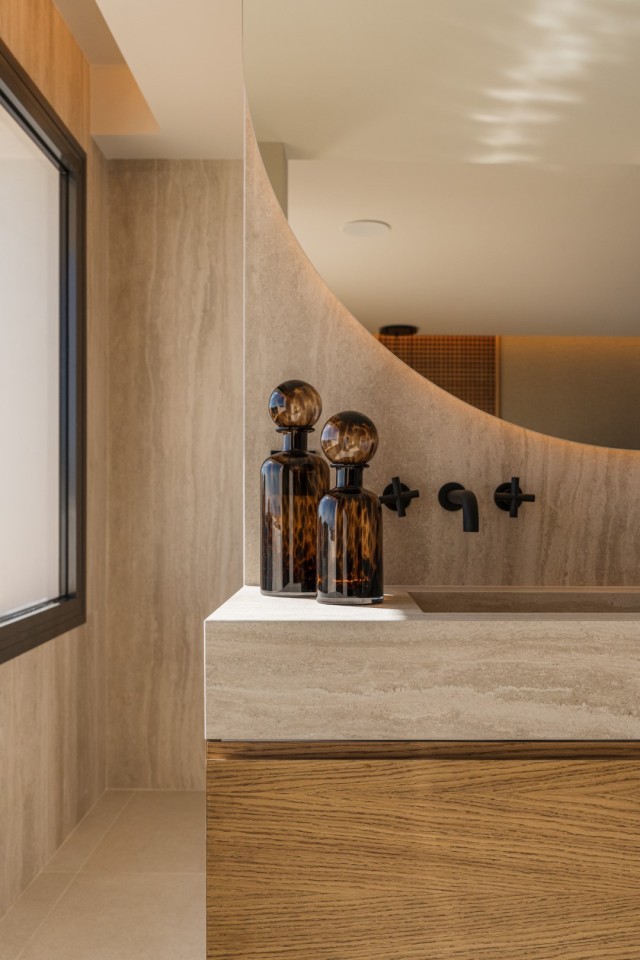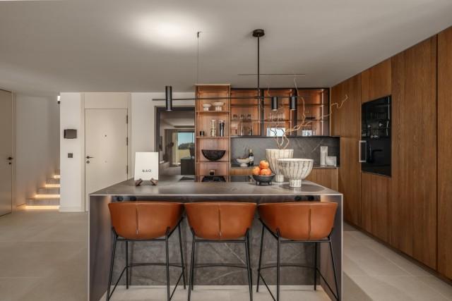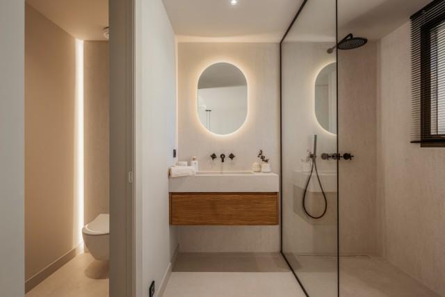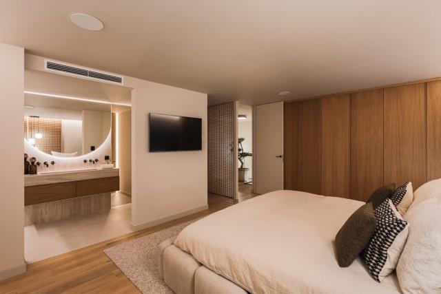This penthouse duplex excels in delivering both comfort and opulence. Built in 2002 and scheduled for a comprehensive renovation in 2024, the property features three beautifully appointed bedrooms and three en-suite bathrooms, coupled with an additional guest toilet. The ground floor boasts a state-of-the-art kitchen outfitted with top-tier Gaggenau appliances, a bespoke wine cellar, and an inviting living and dining area that seamlessly transitions to the splendid outdoor terrace. Natural wood finishes, elegant marble, and modern microcement detailing elevate the interior to an art form. The innovative architect behind this project ensures functionality and aesthetics meet harmoniously, making each corner of this home a sophisticated yet functional space.