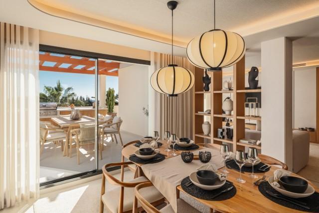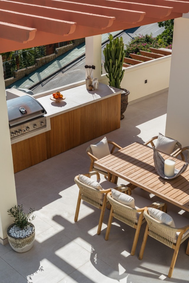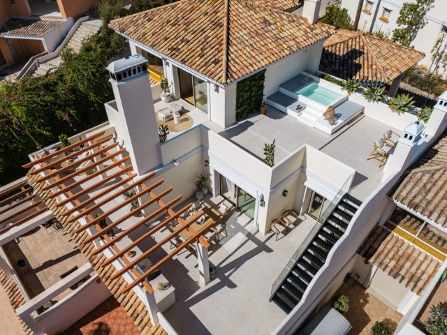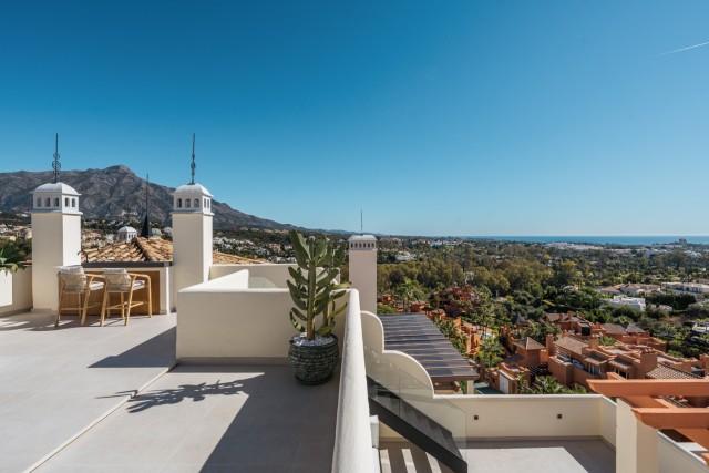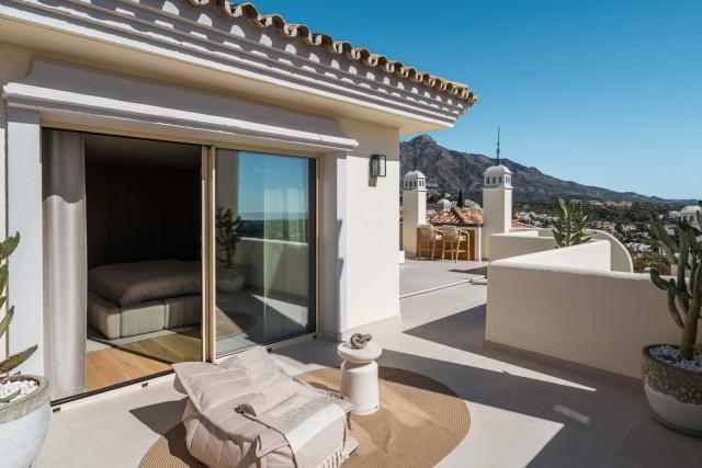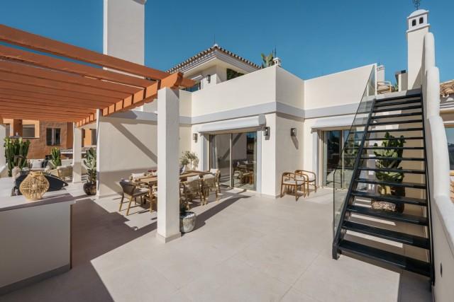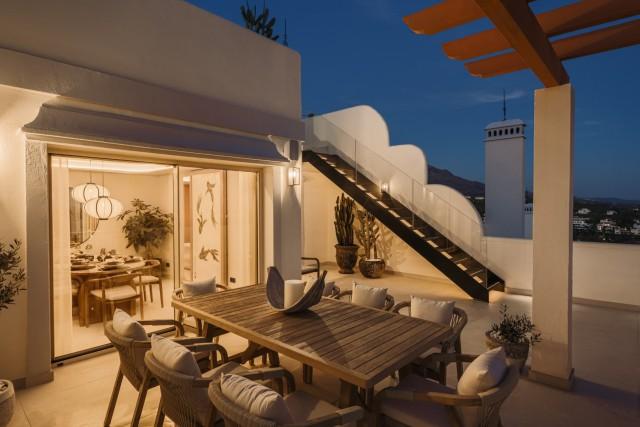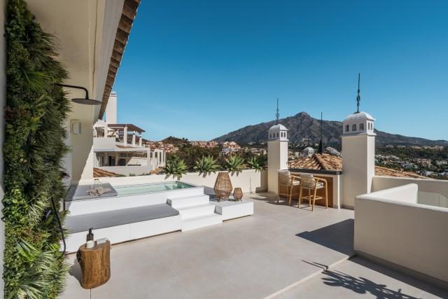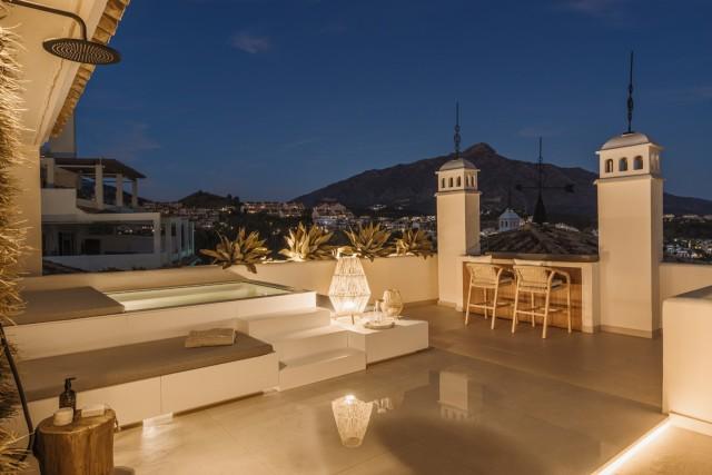 Totally Renovaded Duplex Penthouse in Southern Spain. Introducing a luxurious duplex penthouse representing modern elegance and architectural brilliance within Nueva Andalucía's exclusive Los Belvederes urbanisation. This property offers immediate access to central Marbella while providing an unparalleled lifestyle. Spanning 412 square meters including terrace and exclusive usage of the roof terrace. These outdoor spaces are meticulously designed with features such as an outdoor kitchen and generous chill-out zones, including a stunning 181m2 roof terrace complete with a private pool.