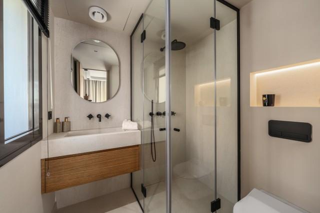 The master bedroom suite, located on the first floor, offers a luxurious en-suite bathroom and direct access to the rooftop's leisure facilities. Here, residents can enjoy the private pool under the Andalusian sky, adding an element of exclusive relaxation. The terraces have a stunning 180-degree views encompassing both La Concha and the shimmering Mediterranean Sea, making it a haven for those who appreciate unparalleled views.