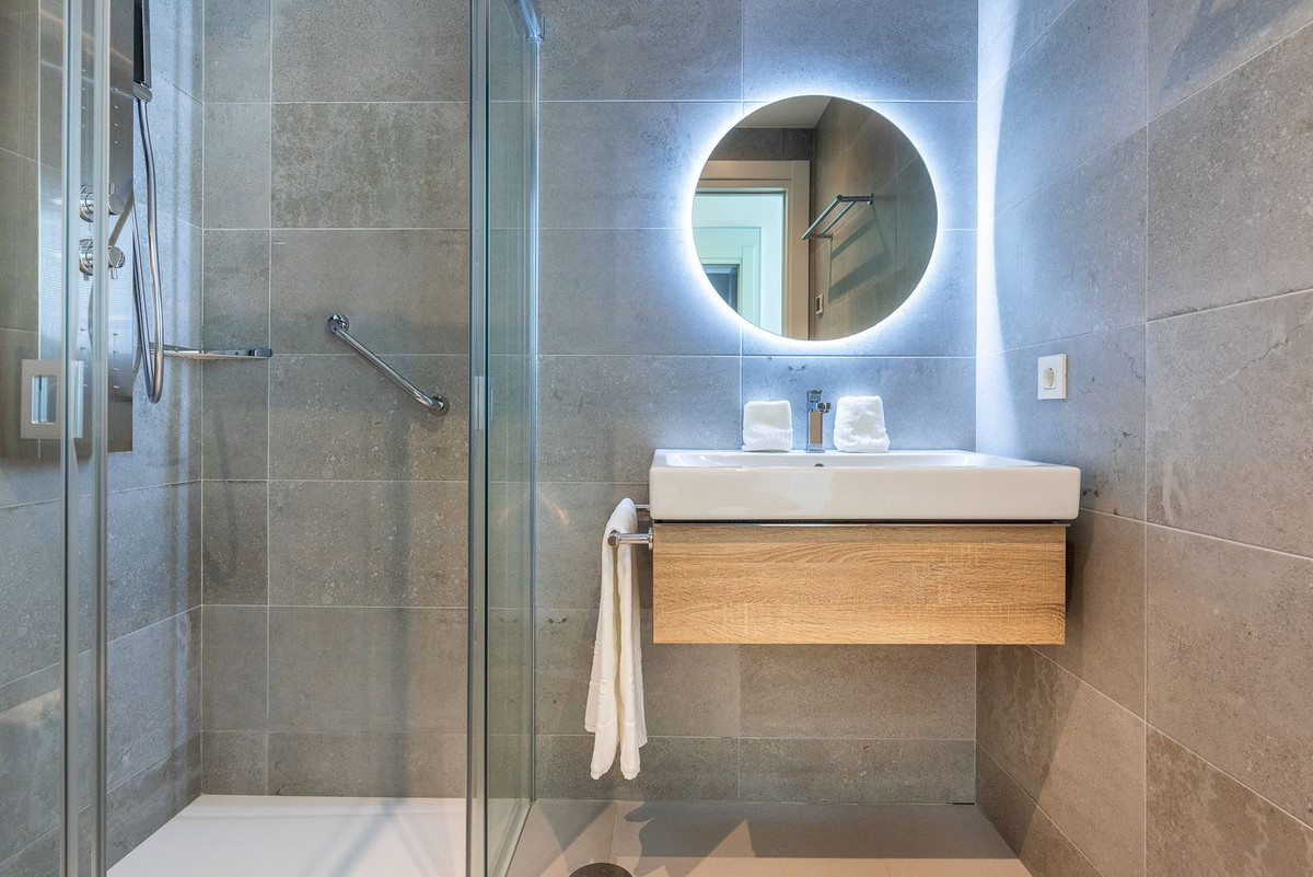 Bedroom 2: Double room with air conditioning, wardrobe, flat-screen TV, and en-suite bathroom with shower.