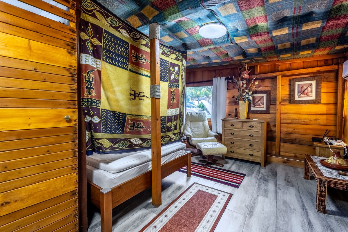 - Two-bedroom owners’ bungalow with parking area, garden and dining terrace