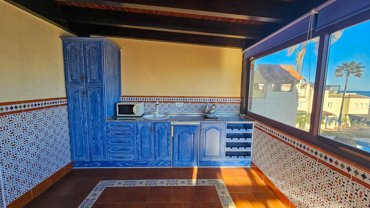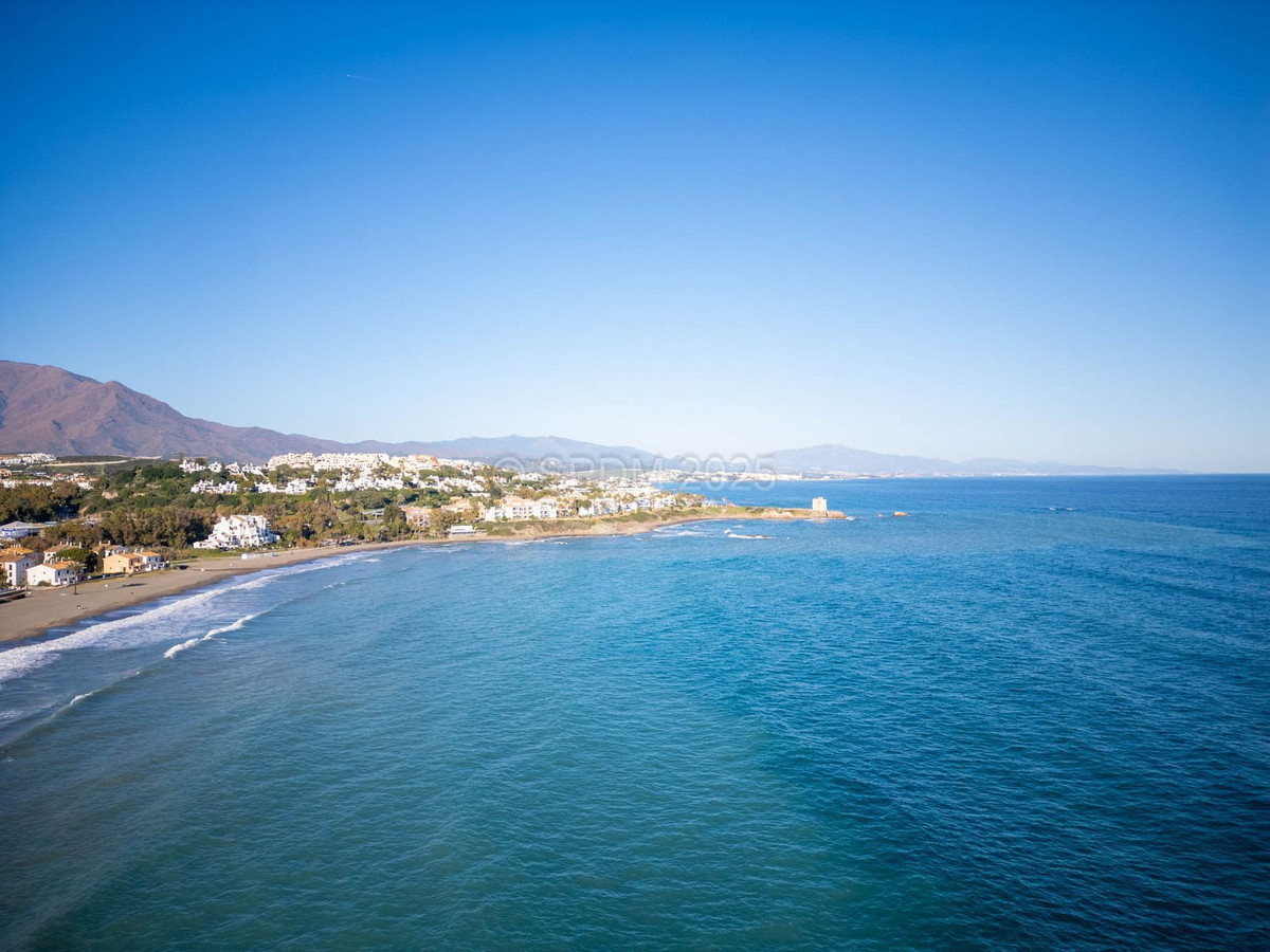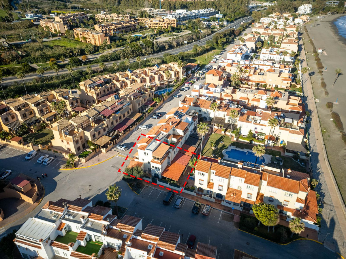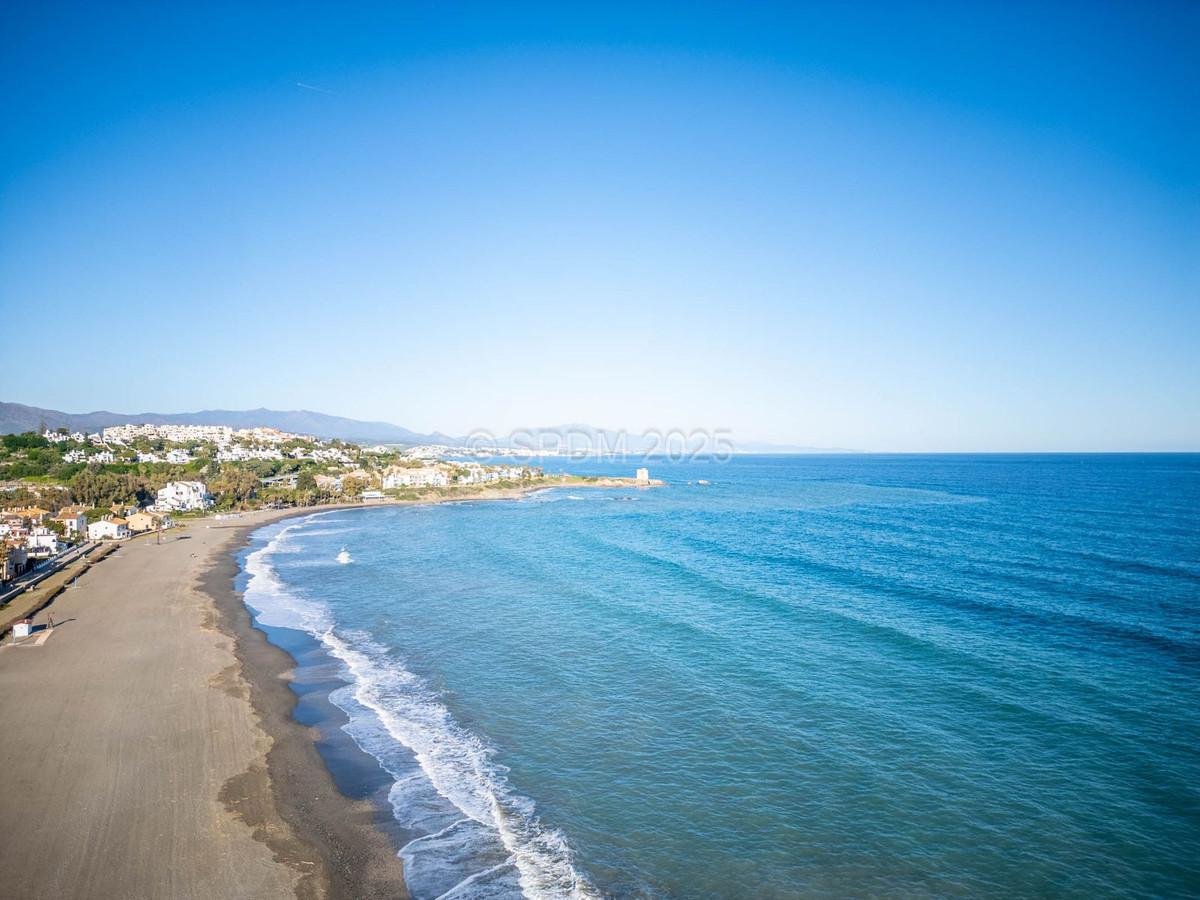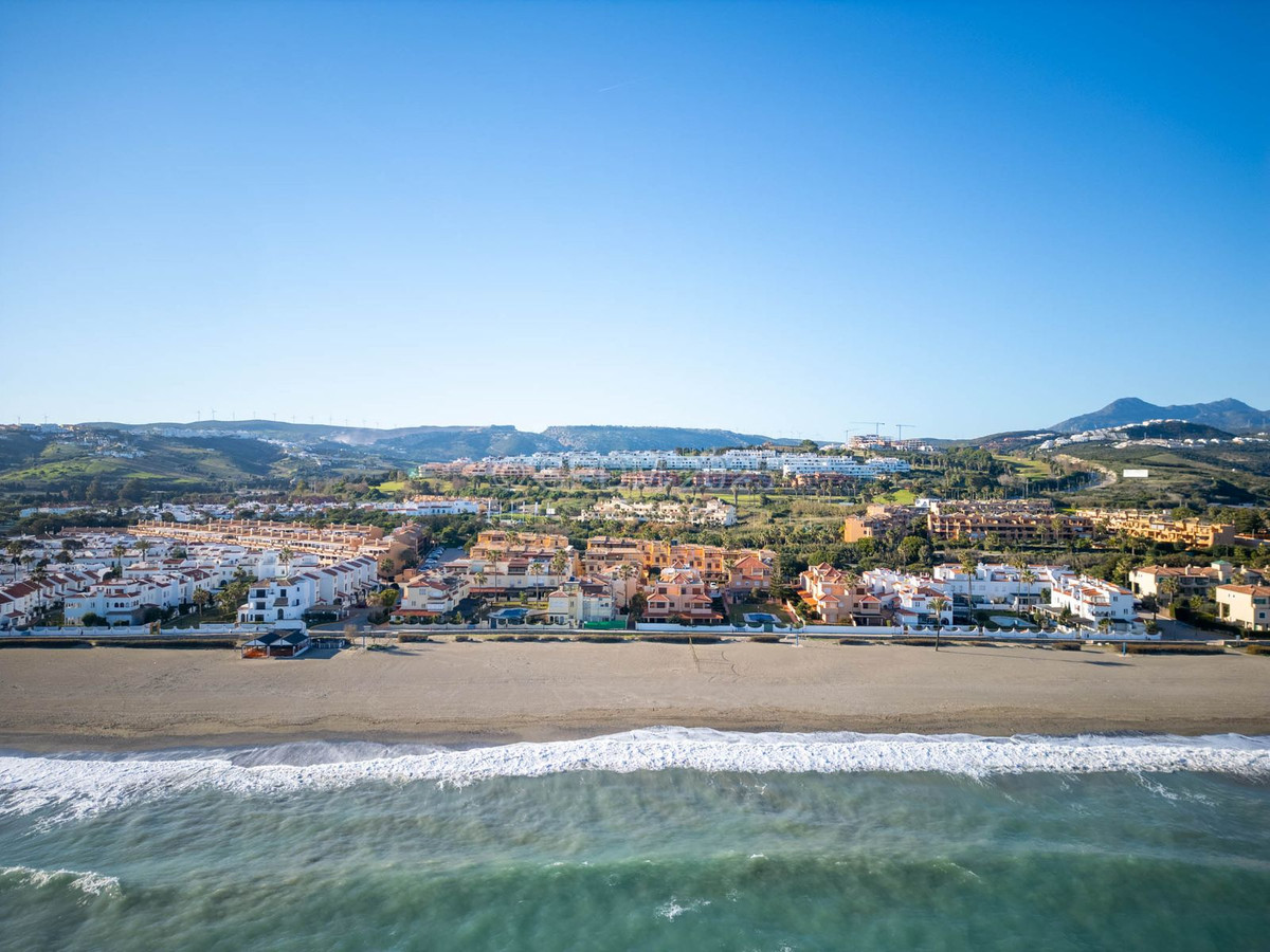 This magnificent property is located in a frontline beach development. It is ideally located in a quiet area and yet is just a few minutes from the town of Sabinillas with all its amenities. The semi-detached house is located in a well-maintained private and quiet development with beautiful gardens and communal pool. In addition to a public paddle tennis court complex right next door. The development is located in Marina de Casares, between Sabinillas and Estepona, with easy access to the motorway, 5 minutes drive from both towns and the attractive Puerto de la Duquesa where there are all kinds of shops and leisure venues. Very close to 3 different beaches with good restaurants and a wonderful beach club, one of them a dog beach, and very close to the new Estepona Hospital. There are 5 golf courses within a 5-minute drive, one of them being the well-known Finca Cortesin, of great prestige and home to the Volvo Masters for some years.