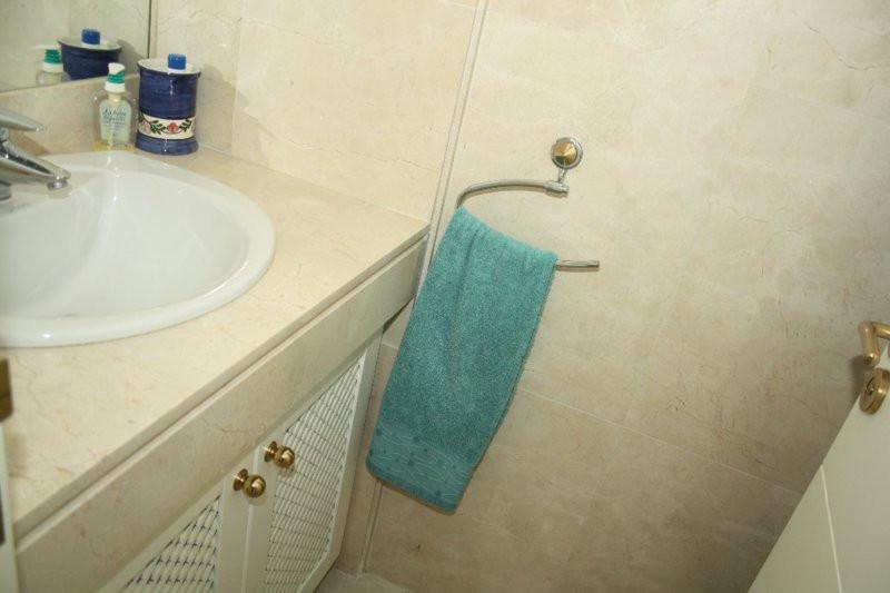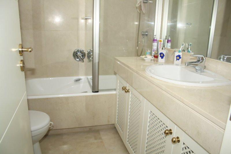 This south-facing apartment boasts unparalleled sea views and lush landscaped gardens. It features a spacious entrance hall, an elegant living and dining room with access to a magnificent terrace—perfect for relaxing and taking in the scenery. The fully equipped kitchen includes a breakfast area and a separate laundry room. There are three double bedrooms with fitted wardrobes and two bathrooms. Additionally, the property offers underground parking and a storage room, accessible by elevator or stairs. Ideally situated just a short stroll from restaurants and only a five-minute drive to a wide range of services, including bars, shops, supermarkets, upscale beach clubs, and prestigious golf courses. property Details: 3 Bedrooms, 2 Bathrooms Built Area: 170 m² Terrace: 50 m² 24-Hour Security