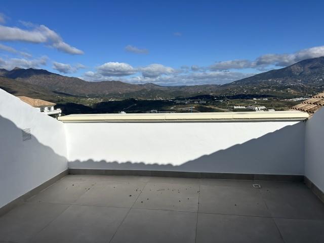 Spacious duplex penthouse with 3 bedrooms and 3 bathrooms. You enter the open and impressive hallway. It immediately gives you a feeling of luxury and style. On the enter level you find a large living dining room, and large semi open kitchen and two good size bedrooms and two bathrooms. The main bedroom and the salon lead out to the large terrace with impeccable views to the mountains and over country side. The third bedroom with en suite bathroom and private terrace is on the upper level. The property comes with very large private parking and store room. Although the property was as new the current owner has brought it even to a higher standard.