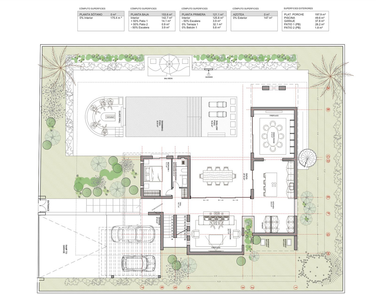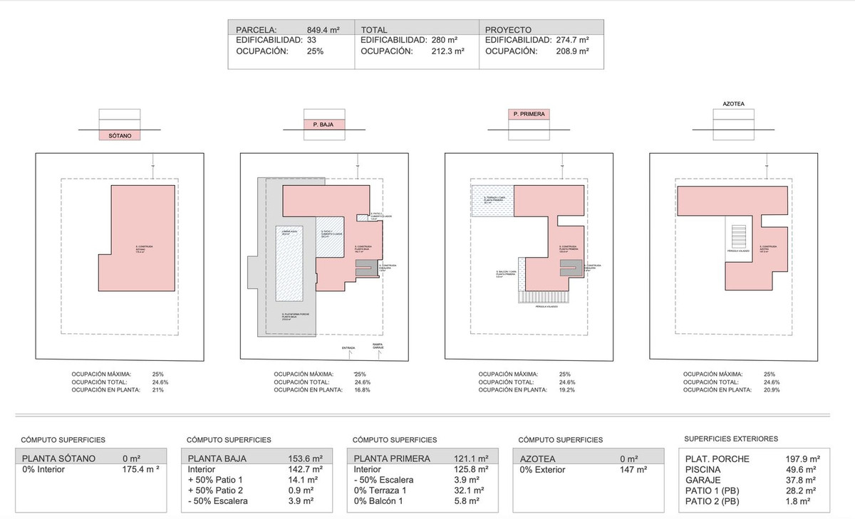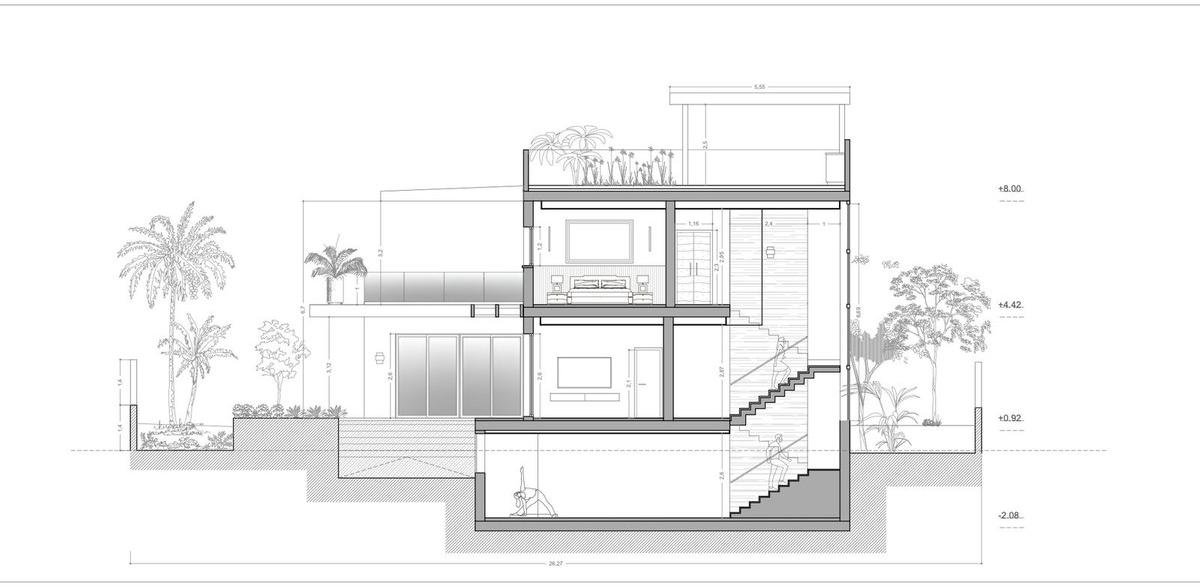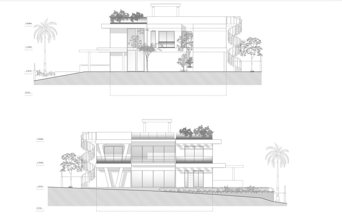 The buildability of the land is a generous 33%, and so as well as the 280 square meters that can be built above ground, there is also a huge basement, which, due to the incline of the land, can be built with substantial natural light.