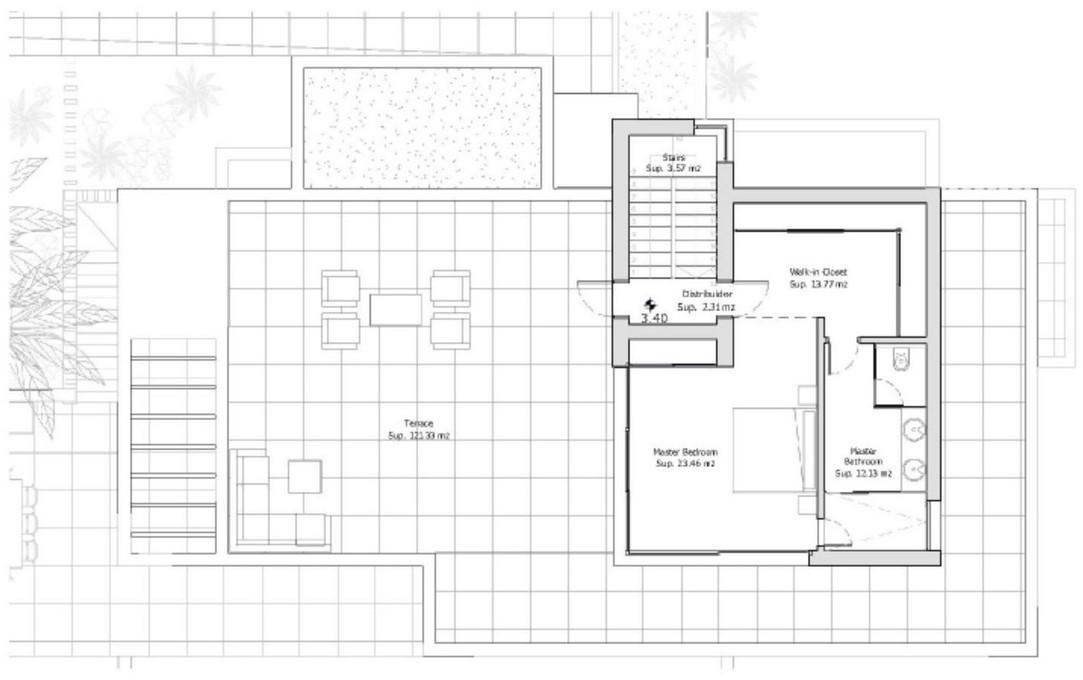 Outside, the villa boasts an impressive swimming pool and landscaped gardens that combine native flora with a minimalist design. Multiple lounge areas and an outdoor barbecue space make this the perfect place for entertainment and relaxation, offering an exclusive and serene ambiance.