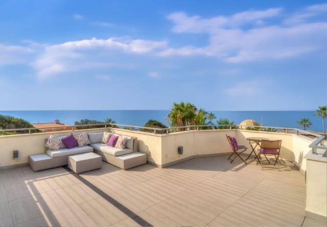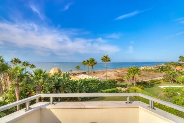 Immaculate five bedroom, south facing beachfront villa for sale in Marbella East. This luxury villa offers breathtaking sea views and direct access to the beach. The property is set on a generous flat plot of 1,016.23m² which has been beautifully landscaped with a private heated pool and an automatic cover.