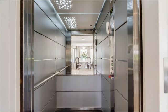 The first floor leads to two guest suites; and the master suite with beautiful sea views. The upper-level gives access to the spacious solarium. An elevator connects all levels of the house.
