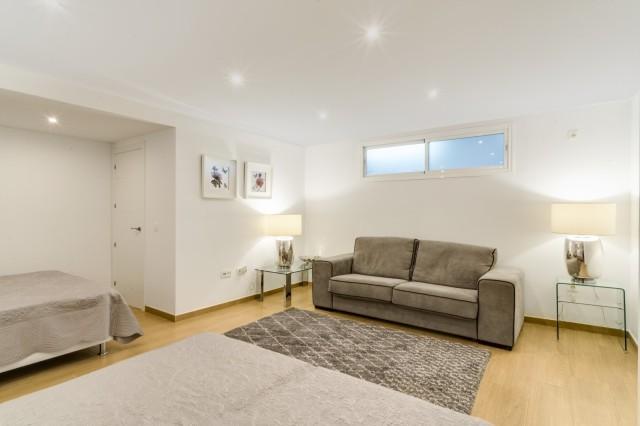 This beachfront villa is distributed over three levels plus solarium. The lower level gives access to a self-contained apartment and the garage. The entrance level has a stunning open plan living and dining area; fully fitted open plan kitchen with modern appliances; laundry area; a guest suite; and access to the terrace and garden.