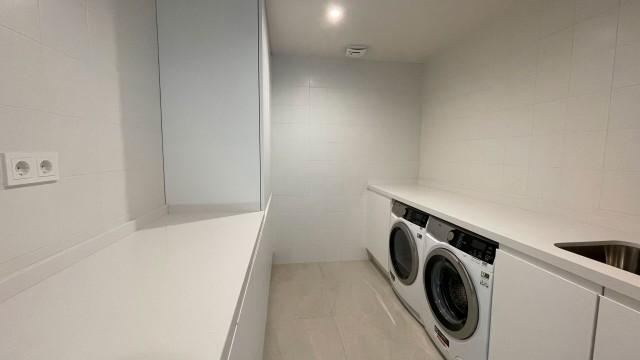 This villa features its own private pool and garden with a barbecue area, which you can access directly from the living room. Upon entering the property, you are welcomed by a stunning entrance hall that leads to the dining room, connected to the fully equipped open-plan kitchen.