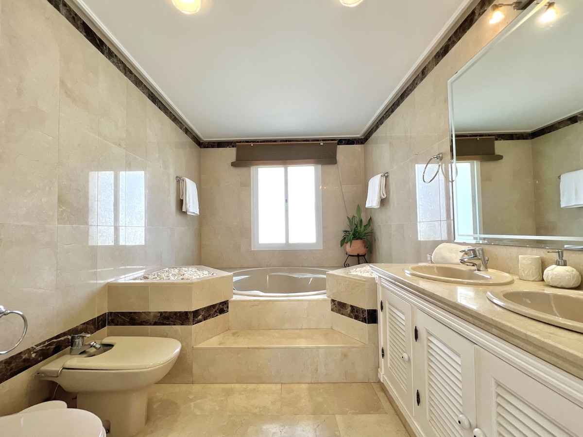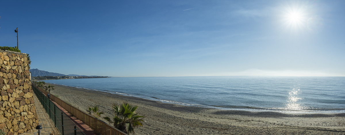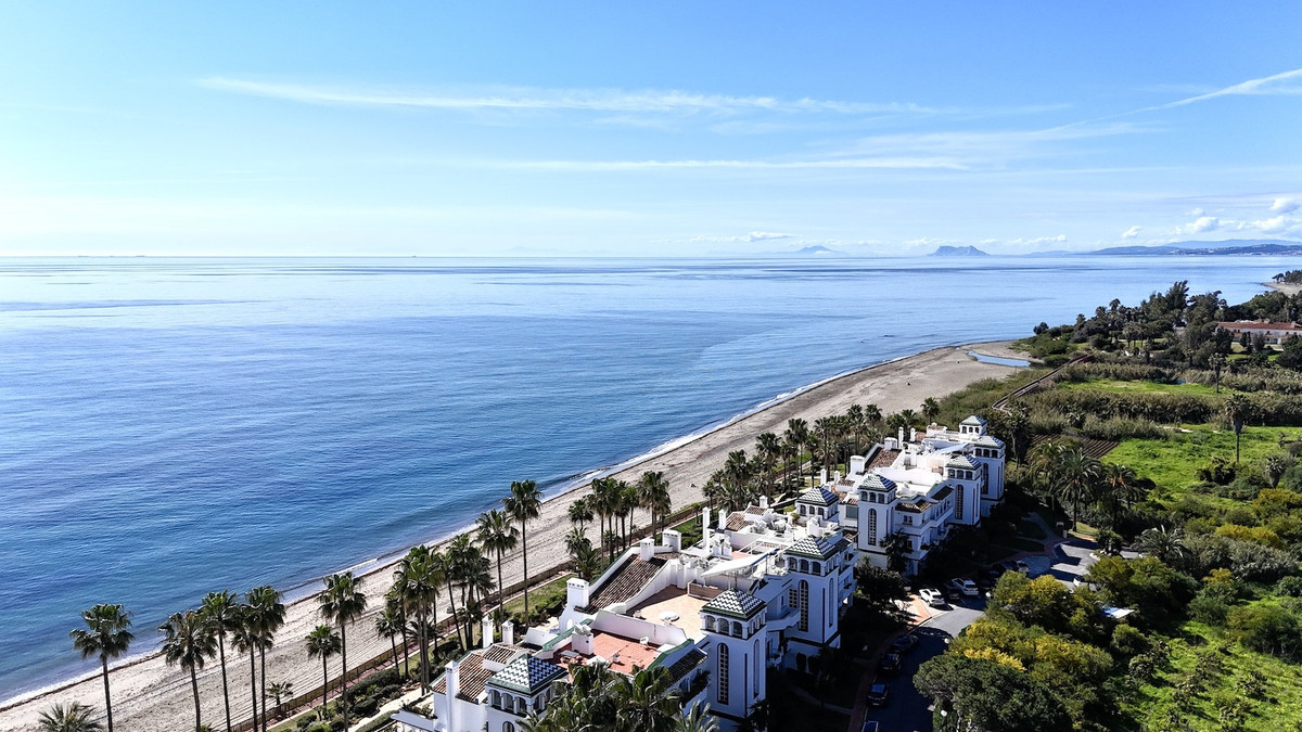 Located in the prestigious Dominion Beach area of Estepona East, this luxurious duplex penthouse offers a combination of elegant living and unbeatable convenience. Situated along the renowned New Golden Mile, the property enjoys a prime location, with direct beach access through beautifully landscaped communal gardens. Estepona Centre is just a short drive away, and the property benefits from excellent road connections, including the A-7 coast road, ensuring easy access to Marbella, Puerto Banús, and beyond. The area is well-served by international schools, making it a perfect location for families, while nearby golf courses, sports facilities, and supermarkets cater to various needs.
