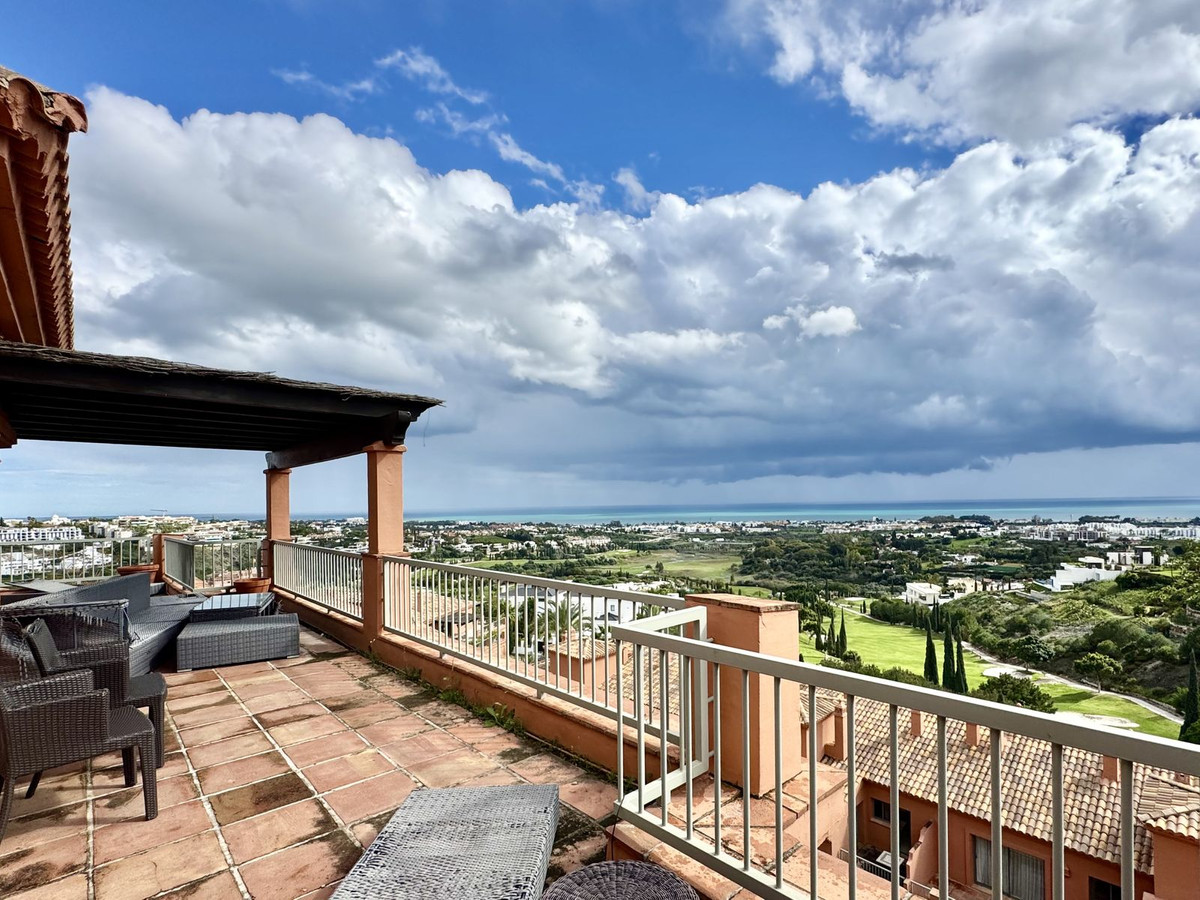 This 3-bed corner penthouse offers breathtaking sea, Gibraltar, and golf-front views. The property features 3 spacious bedroom suites, each with access to a terrace, and 156m² of living space. It also boasts a large 142m² terrace for seamless indoor-outdoor living, with a kitchen terrace and ample storage.
