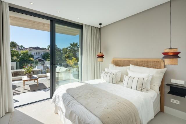 This modern villa is located in prime residential area of Nueva Andalucia, offering an exceptional blend of luxury and convenience. Situated in Marbella’s sought-after Golf Valley, the property enjoys sea and mountain views while being just minutes from all key amenities. The villa’s contemporary design maximises natural light, with floor-to-ceiling glass sliding doors seamlessly connecting the indoor and outdoor living spaces. The open-plan layout enhances both functionality and sophistication, with a sleek modern kitchen featuring a central marble island and state-of-the-art integrated appliances.