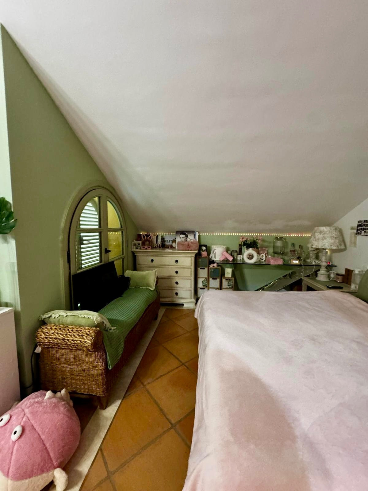 Inside, the property features a fully fitted kitchen, an open-plan living and dining area that connects seamlessly to the private terrace and garden, and a covered porch area that can function as a fourth bedroom. All three bedrooms are en-suite, with the top floor offering a nearly independent suite including a spacious bedroom, dressing area, en-suite bathroom, and private terrace – ideal for family privacy or guests.