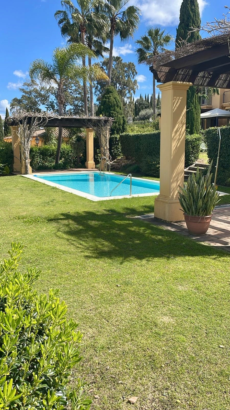 This exceptional Sotogrande townhouse for sale represents a unique opportunity to own a family home in Los Carmenes de Almenara, combining golf-frontline views, private garden space, secure community living, and proximity to top schools, polo, and leisure amenities.