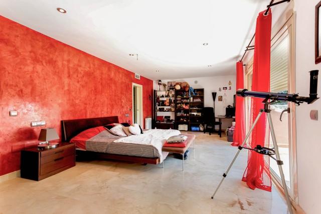 Upper floor: Master bedroom with separate dressing area and on suite bathroom with access to a private terrace overlooking the garden, pool and sea, double bedroom.