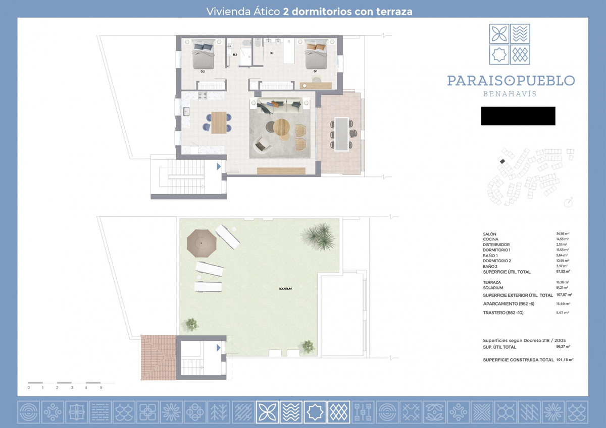 This exclusive 2-bedroom, 2-bathroom penthouse offers an unparalleled lifestyle in one of the most prestigious communities on the Costa del Sol. Featuring a modern, bright design, high-end finishes, and a fully equipped kitchen, this property combines comfort and elegance. The master bedroom includes an en-suite bathroom, while the spacious private balcony boasts breathtaking views of the sea, Gibraltar, and Africa. The highlight of the apartment is its rooftop terrace, perfect for relaxing and enjoying stunning panoramic views of the mountains and the prestigious Villa Padierna.