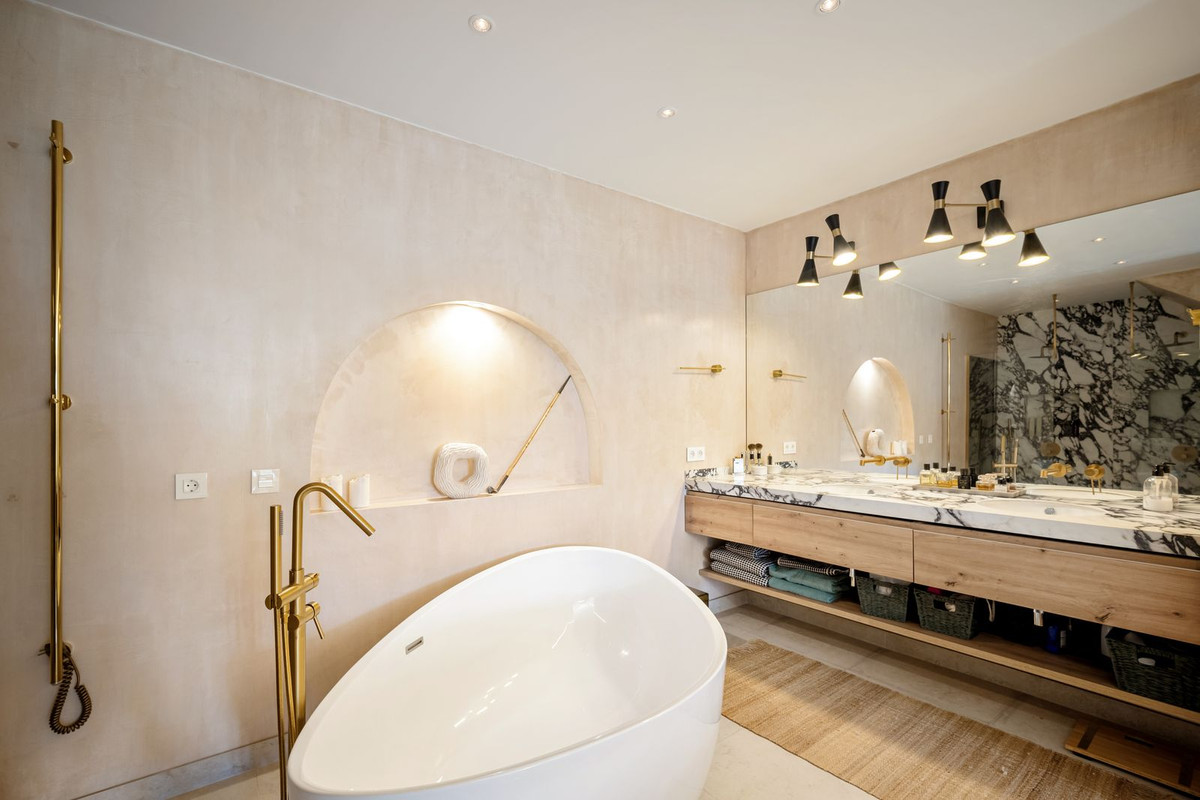 Nestled in the prestigious residential area of Marbella's Golden Mile, this beautifully newly renovated Andalusian-style townhouse seamlessly blends traditional architecture with contemporary Nordic interiors, offering a unique combination of charm, comfort and functionality.