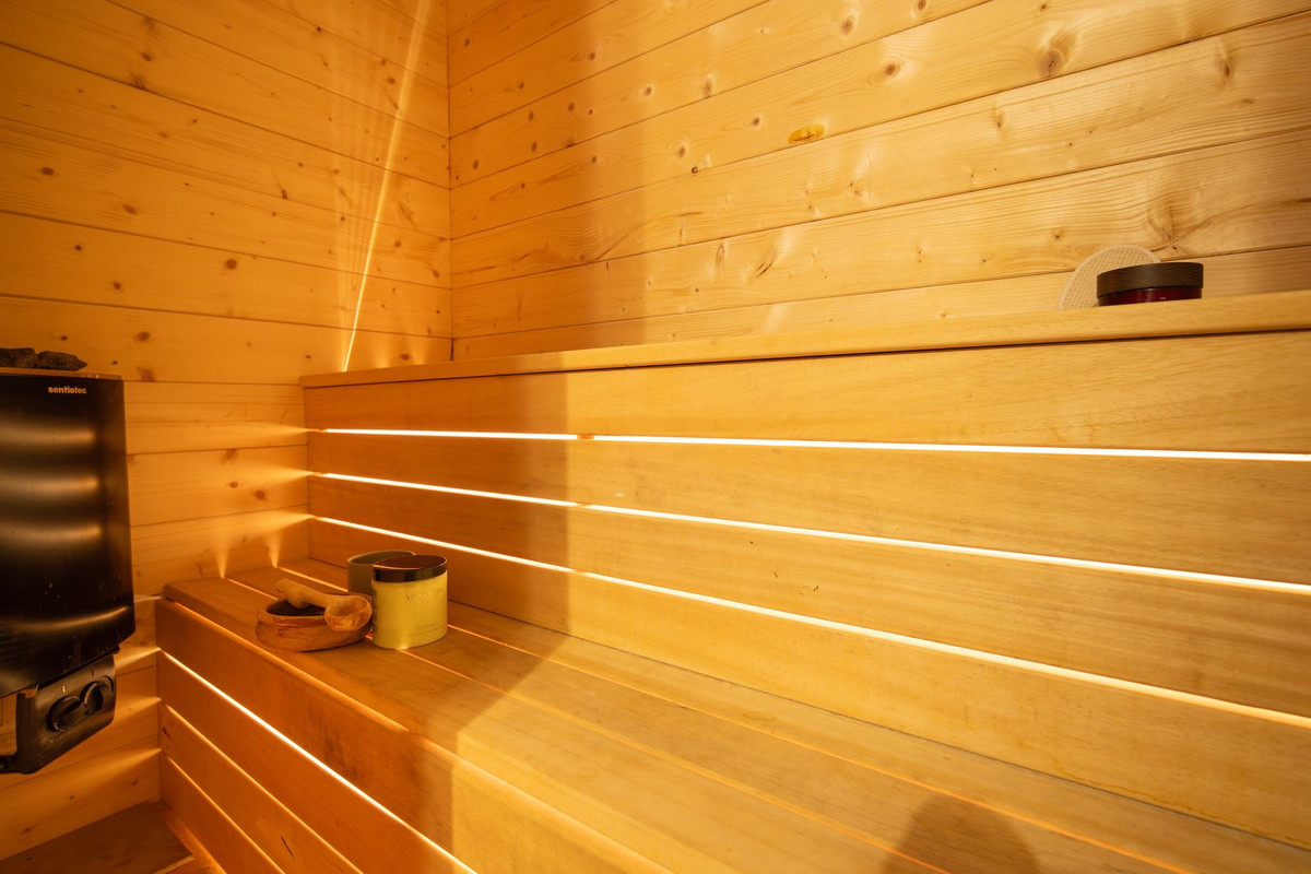 The basement level adds further value with a guest bedroom, a chill-out lounge, a bathroom and a private sauna, making it ideal for hosting guests or creating a wellness sanctuary. This area can easily be converted into a private garage.