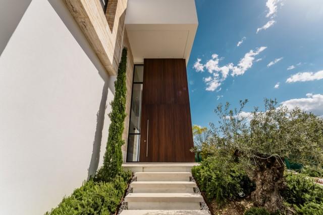 Spanning three meticulously designed levels, the villa boasts a built area of 471 m² and 247 m² of terraces, perfectly blending comfort and sophistication. The five en-suite bedrooms are private sanctuaries, of which three bedrooms are located on the first floor, with each with direct access to spacious terraces that embrace the indoor-outdoor lifestyle. The main floor features a seamless open-plan layout with a sleek modern kitchen, elegant dining area, and a cozy fireplace, all bathed in natural light. Outside, a lush garden, serene private pool, and covered porch terrace provide the perfect setting for relaxation and entertaining guests.