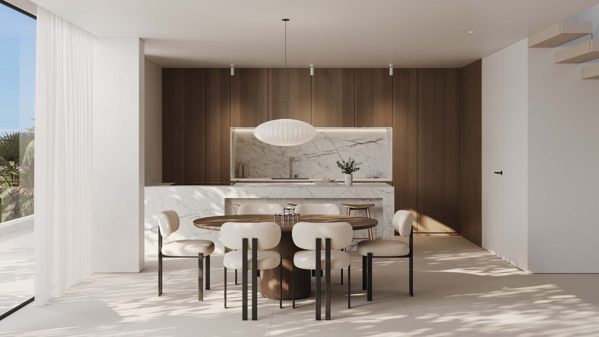 This contemporary masterpiece blends minimalist architecture with luxurious comfort, creating the perfect Mediterranean sanctuary. With floor-to-ceiling windows and open-plan interiors, natural light floods the space, enhancing the serene atmosphere and seamless indoor-outdoor living.
