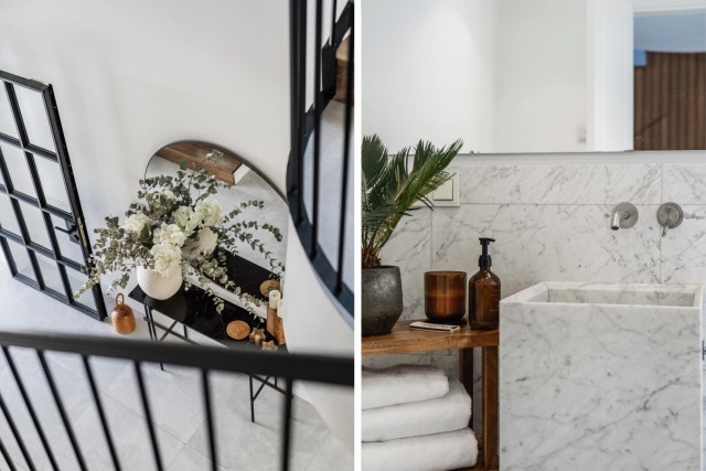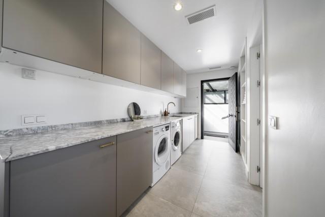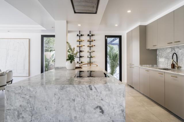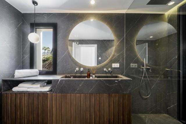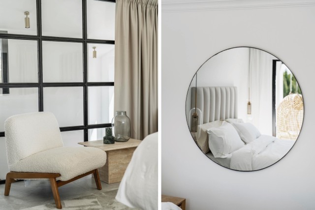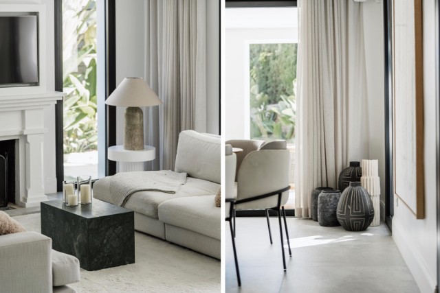 Set in Nueva Andalucía's Golf Valley, this villa blends traditional Andalusian architecture with sleek, minimalist interiors. Designed for family living, this bright and spacious home unfolds across three levels, featuring a muted palette, natural stone bathrooms, and wood accents that add warmth and texture.