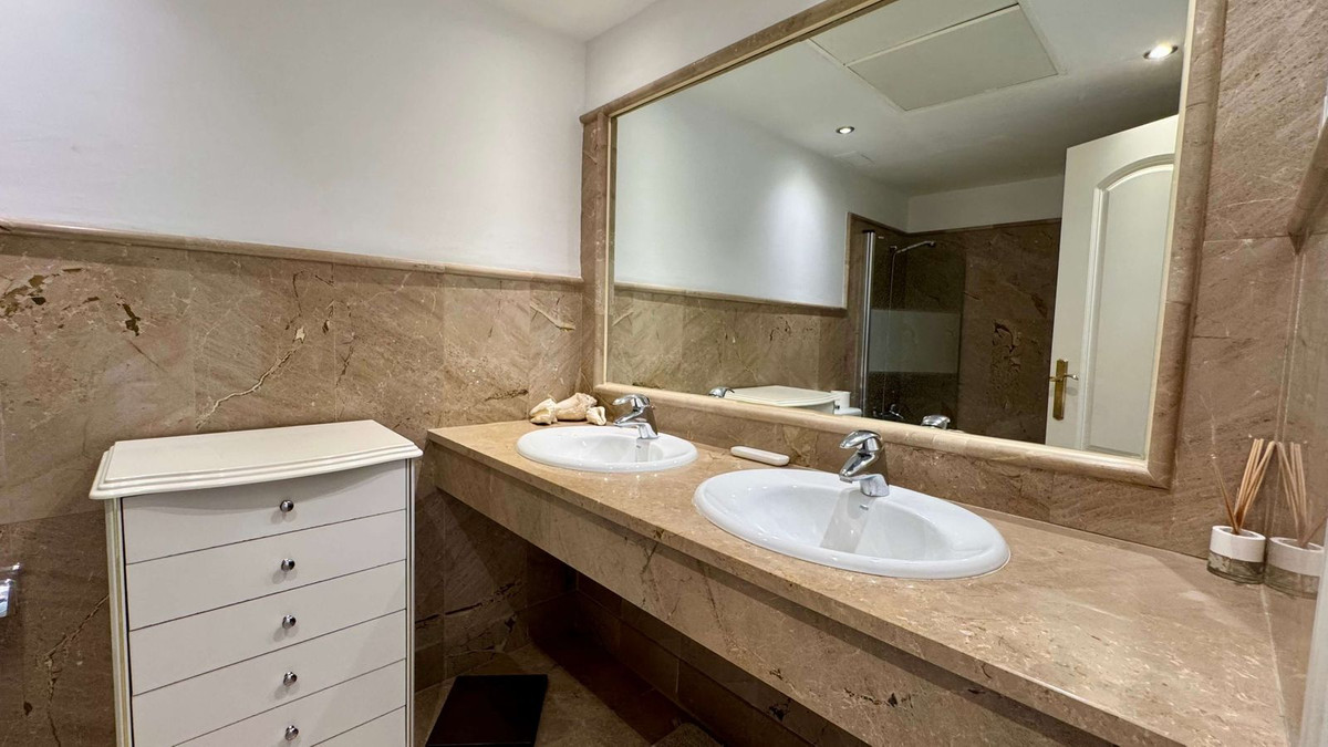 This two-bedroom flat with two underground parking spaces in Cumbres del Rodeo is being sold fully furnished at €585,000 excluding purchase costs.