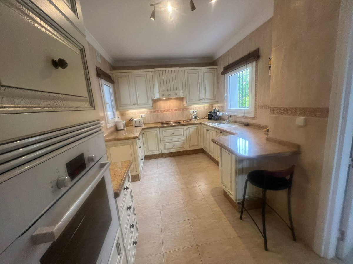 Set on a generous double plot in Paraiso Alto, this fully renovated 4-bedroom, 3-bathroom bungalow offers an exceptional blend of space, style, and scenery. Ideally south-facing, the property enjoys panoramic sea views from the garden as well as picturesque golf course views, creating a peaceful and luxurious atmosphere.