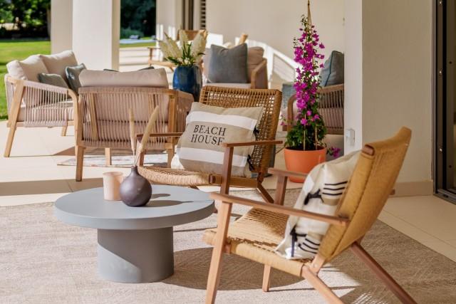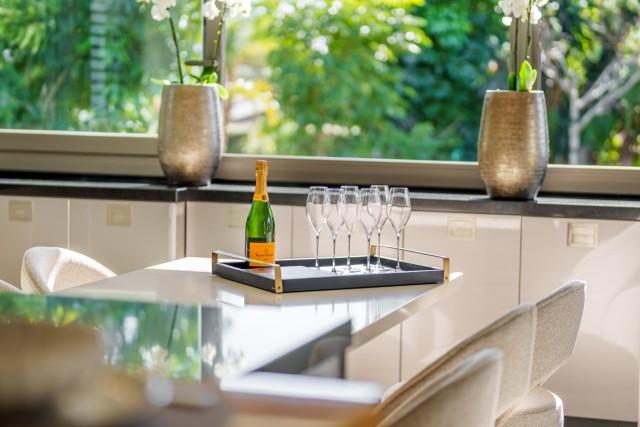 The villa features a wraparound covered terrace, perfect for year-round outdoor living. Inside, the home boasts an entrance hall with garden, a lounge opening onto the terrace and garden, a stunning open-plan professional kitchen with a large central island and 2 dining areas.
