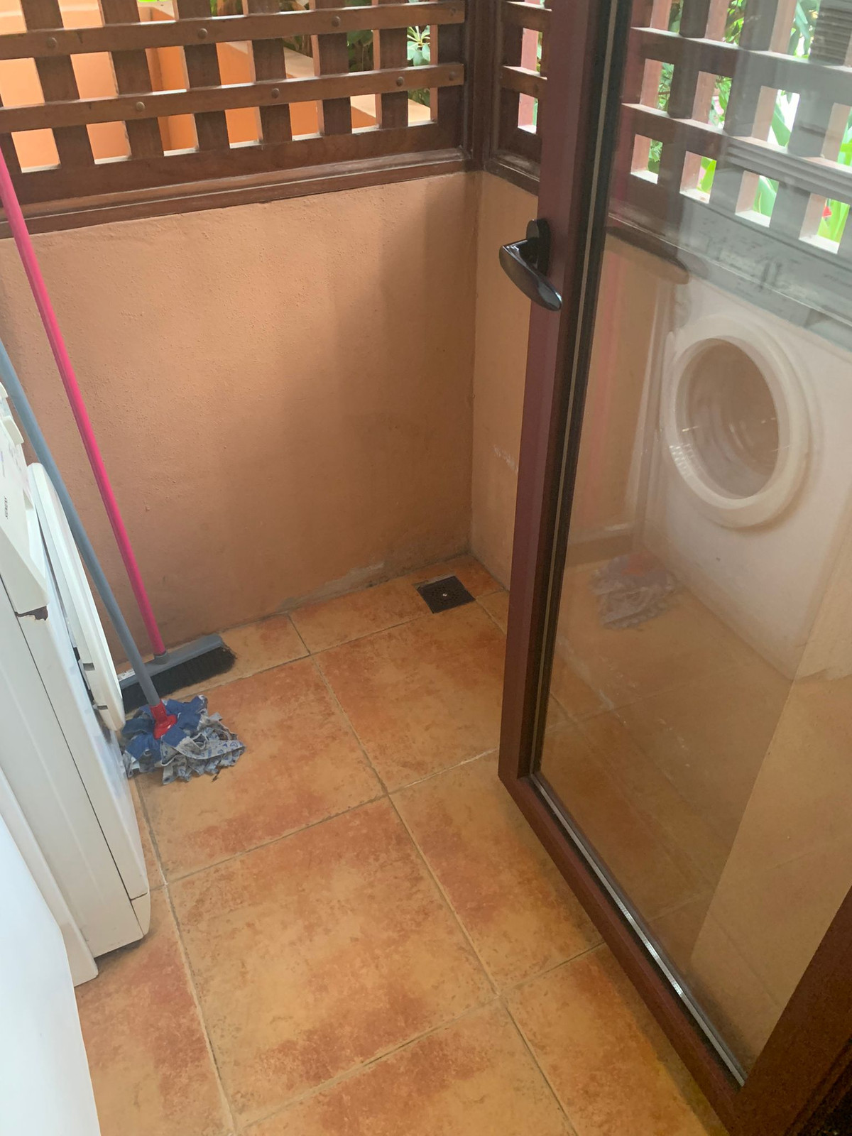 The bright and fully fitted kitchen includes space for a breakfast table and is complemented by an adjoining utility room. The open-plan living area flows seamlessly onto a large private terrace and a small garden, with direct access via steps to the beautifully maintained communal gardens and swimming pools.
